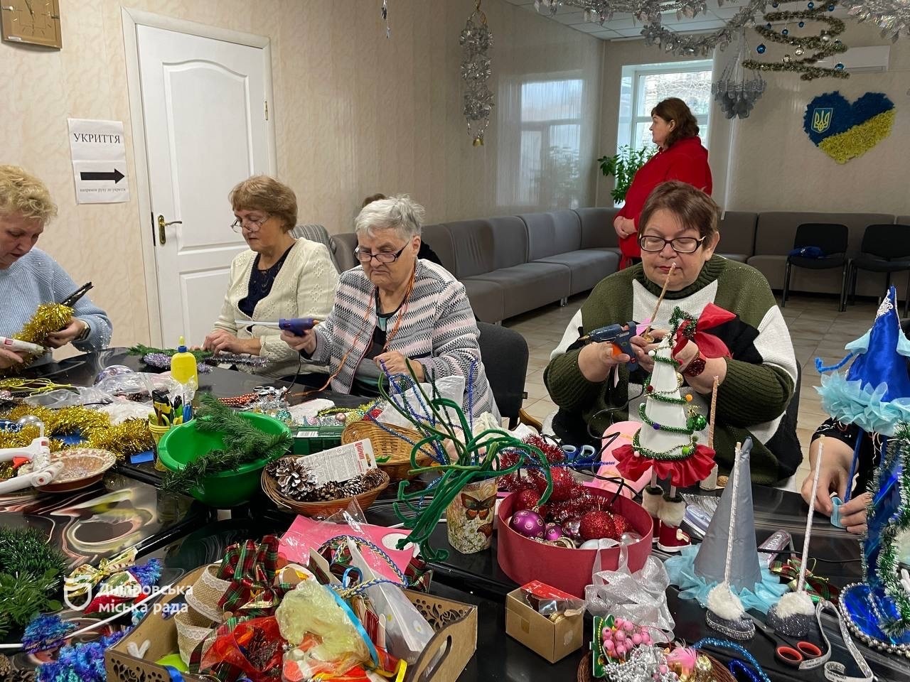 Зараз усі відділи готуються саме до новорічних свят. Підопічні створюють ялинки, прикраси, святкові аксесуари, а в одному з відділів шиють мішечки для солодких подарунків, які планують передати до шпиталю. Нині на обліку в Дніпровському міському територіальному центрі перебуває понад 10 тисяч осіб поважного віку та людей з інвалідністю. Інструкція, як зробити ялинку-тупотунку власноруч, додається.