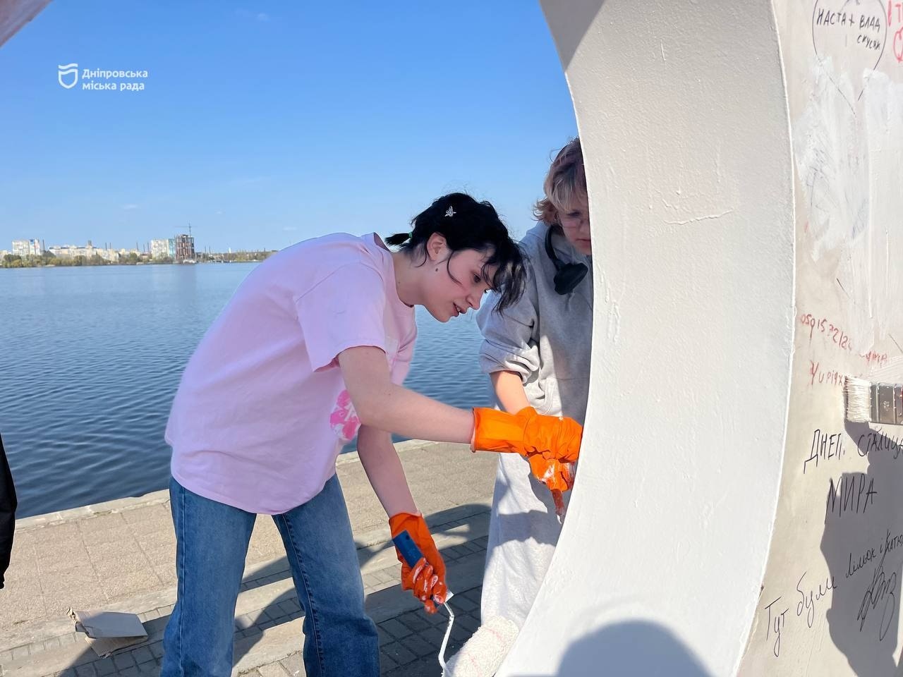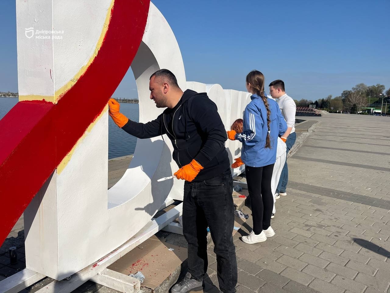 «Повертаємо місту його візитку»: студенти Дніпра власноруч привели до ладу відому фотолокацію на набережній