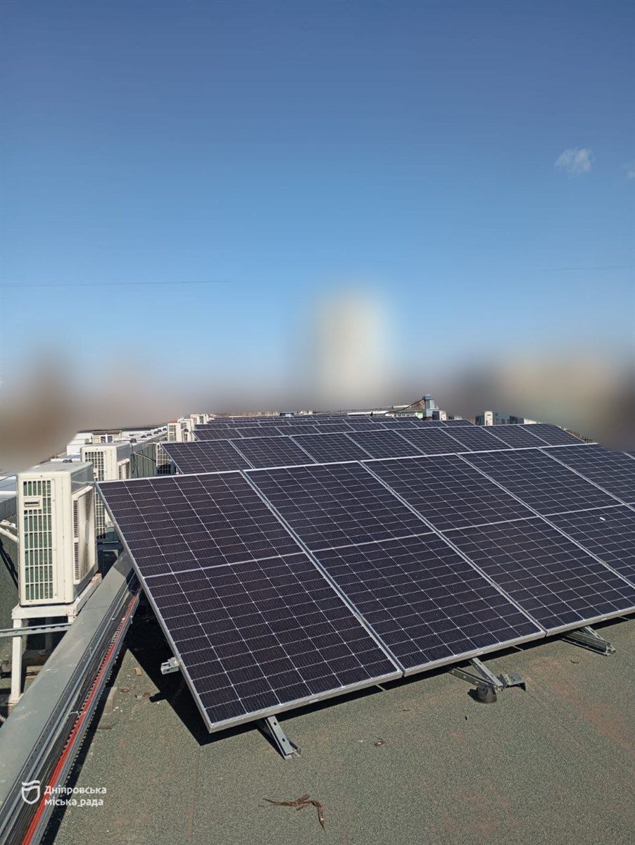 За словами заступника начальника відділу матеріально-технічного постачання та обслуговування КП «Інфо-Рада-Дніпро» Сергія Мозуляка, поруч із будівлею облаштували окрему модульну конструкцію, де розміщені гібридні інвертори, які працюють разом із сонячними панелями на даху. Зараз встановили 56 панелей. У подальшому планують змонтувати ще близько 40. Це дасть можливість збільшити обсяги накопичення електроенергії в акумуляторних системах і ще більше підсилити енергетичну автономність будівлі.