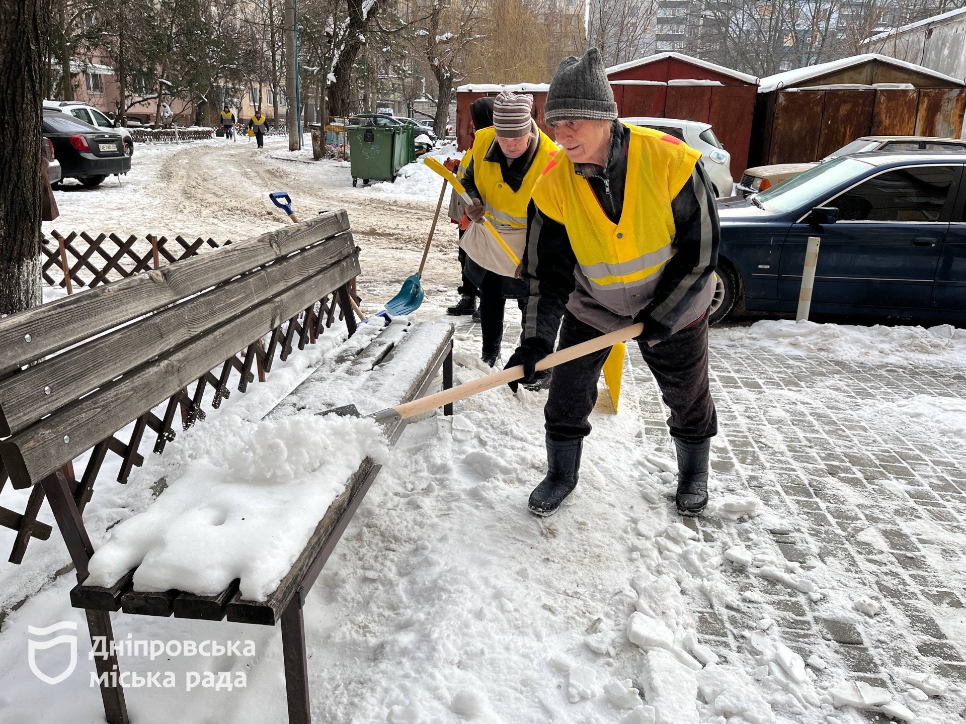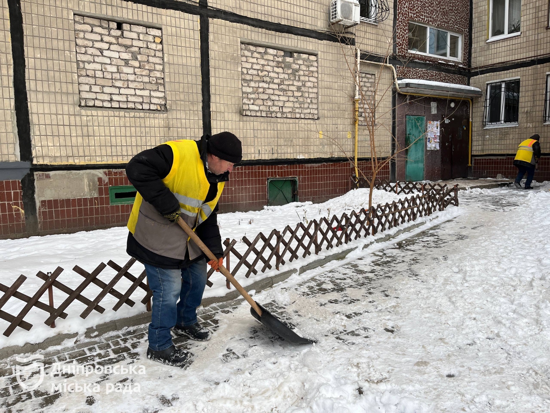 «Двірники забезпечені льодорубами, лопатами й посипальними матеріалами. Загалом по місту працюють близько тисячі двірників, а їхню роботу координують старші майстри, які розподіляють завдання між будинками та під’їздами», — зазначив представник департаменту житлового господарства Дніпровської міської ради Єгор Худяков.