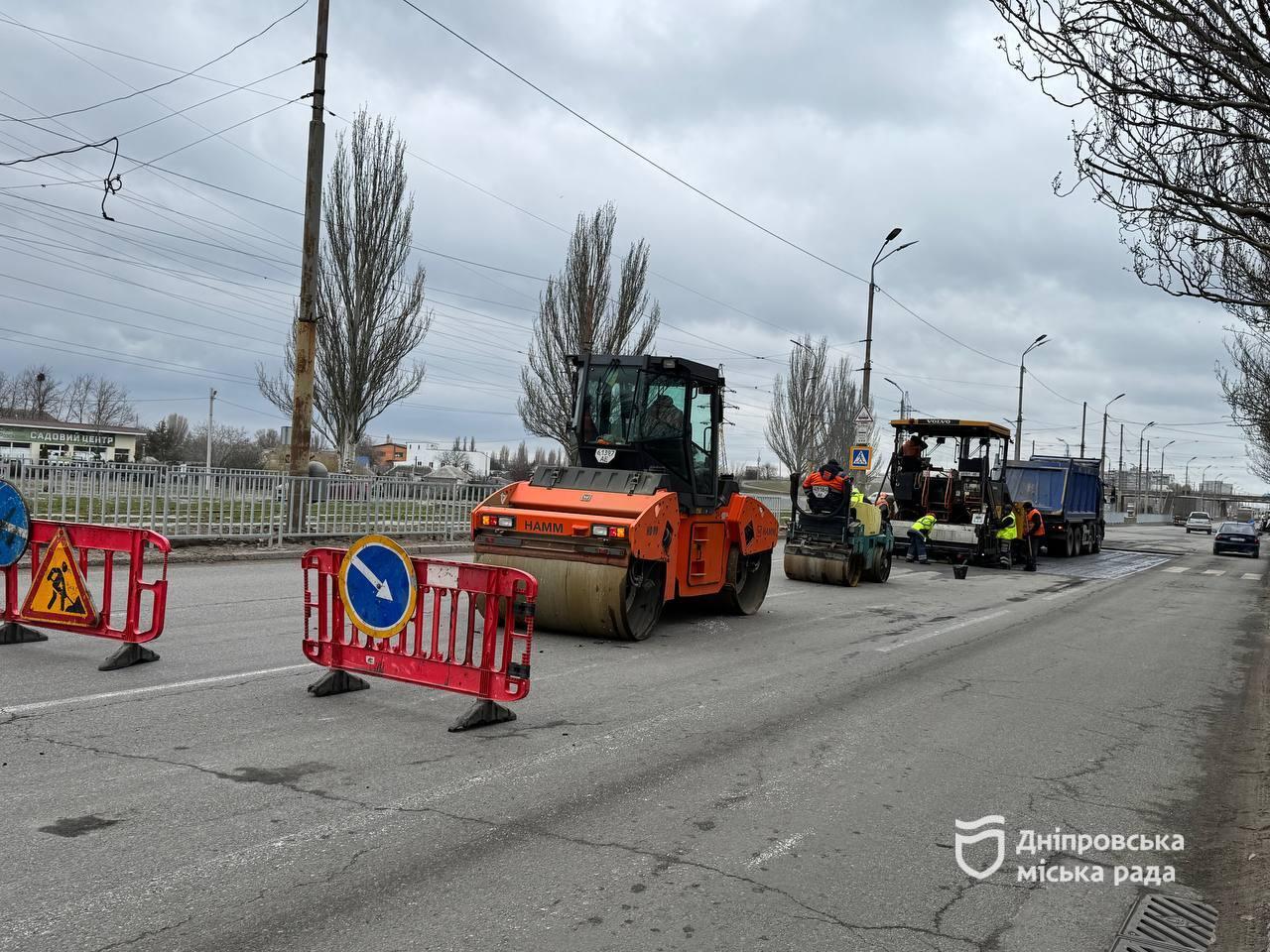 У Дніпрі відремонтували вже понад 10 тис. квадратних метрів дорожнього покриття: бригади переходять від однієї ділянки до іншої
