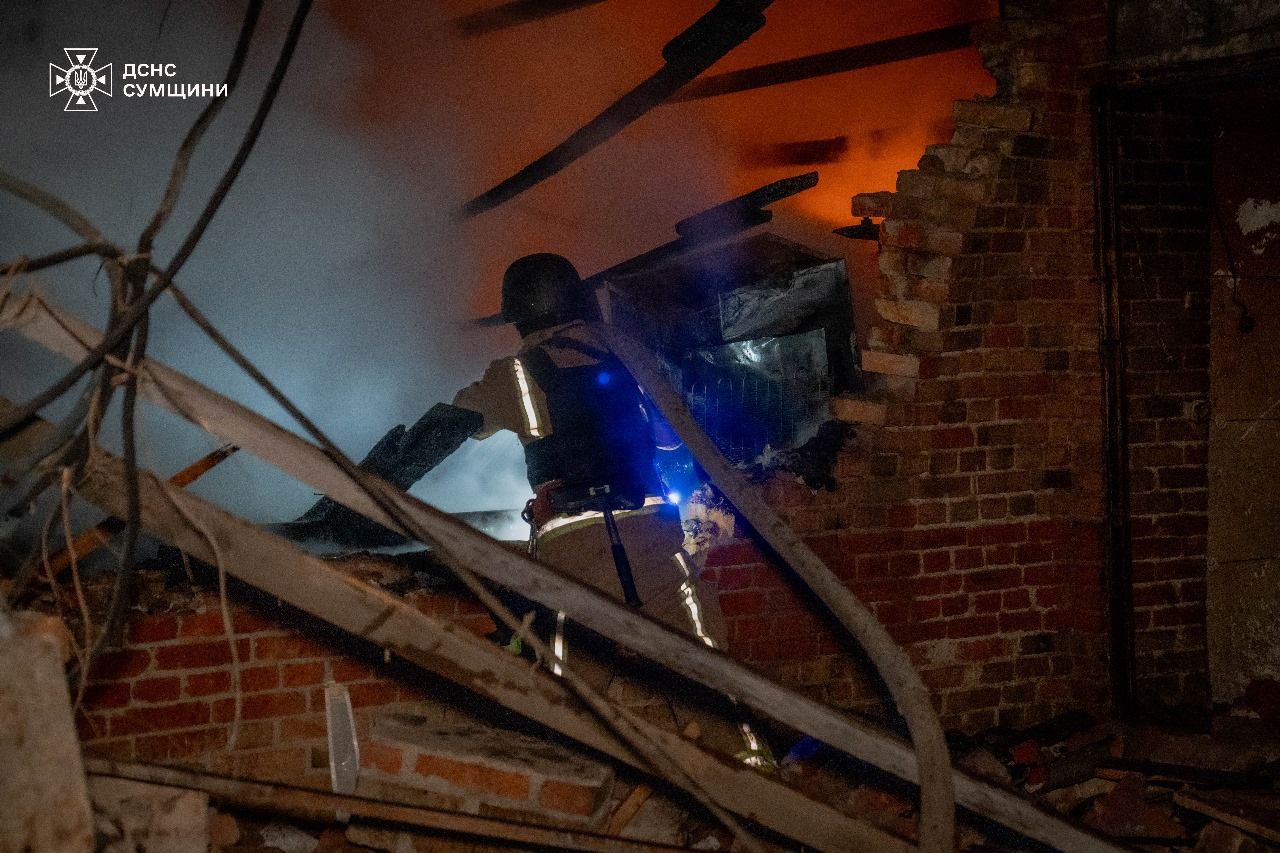 Унаслідок атаки по Сумах спалахнула пожежа в нежитловому приміщенні. Усі осередки горіння ліквідовані. Ніхто з людей не постраждав.
