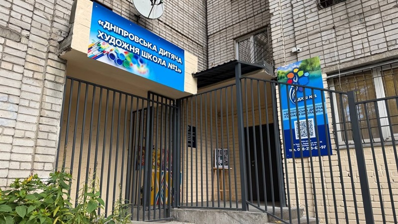 У Дніпрі у філії міського комунального закладу культури «Дніпровська дитяча художня школа № 1» було проведено комплексний ремонт вхідної групи та прилеглої території. До початку робіт будівля перебувала в незадовільному стані: зовнішні елементи (ґанок, дашок, мощення) та застарілі вікна й двері потребували відновлення, що створювало проблеми з теплозбереженням. Крім того, гостро стояло питання безпеки, оскільки біля входу збиралися особи з низькою соціальною активністю.