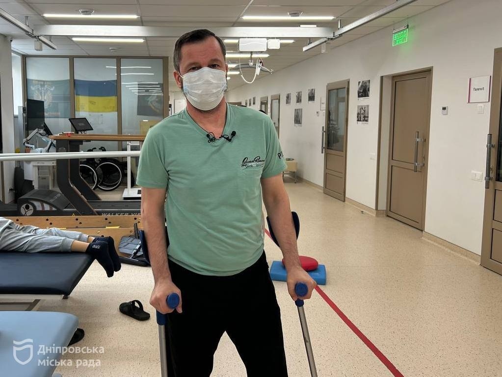 «Біль трохи знизився, я краще пересуваюся з милицями, але попереду, звісно, ще багато роботи», – захисник про прогрес у лікуванні в реабілітаційному центрі Дніпра
