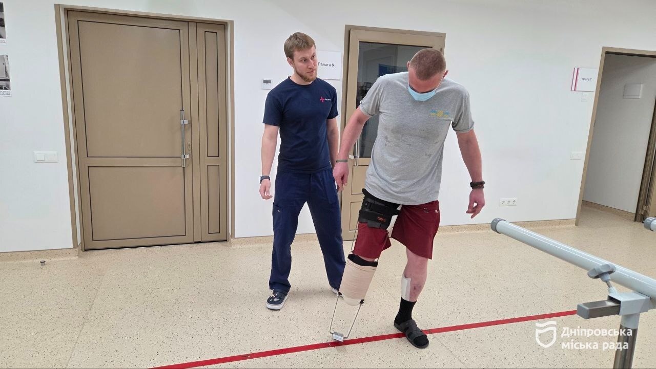 Зараз Олександр проходить допротезну реабілітацію. За словами фізичного терапевта реабілітаційного центру Дніпра Іллі, коли воїн надійшов до них на реабілітацію, він користувався двома підлікітними милицями, а зараз уже ходить без них.