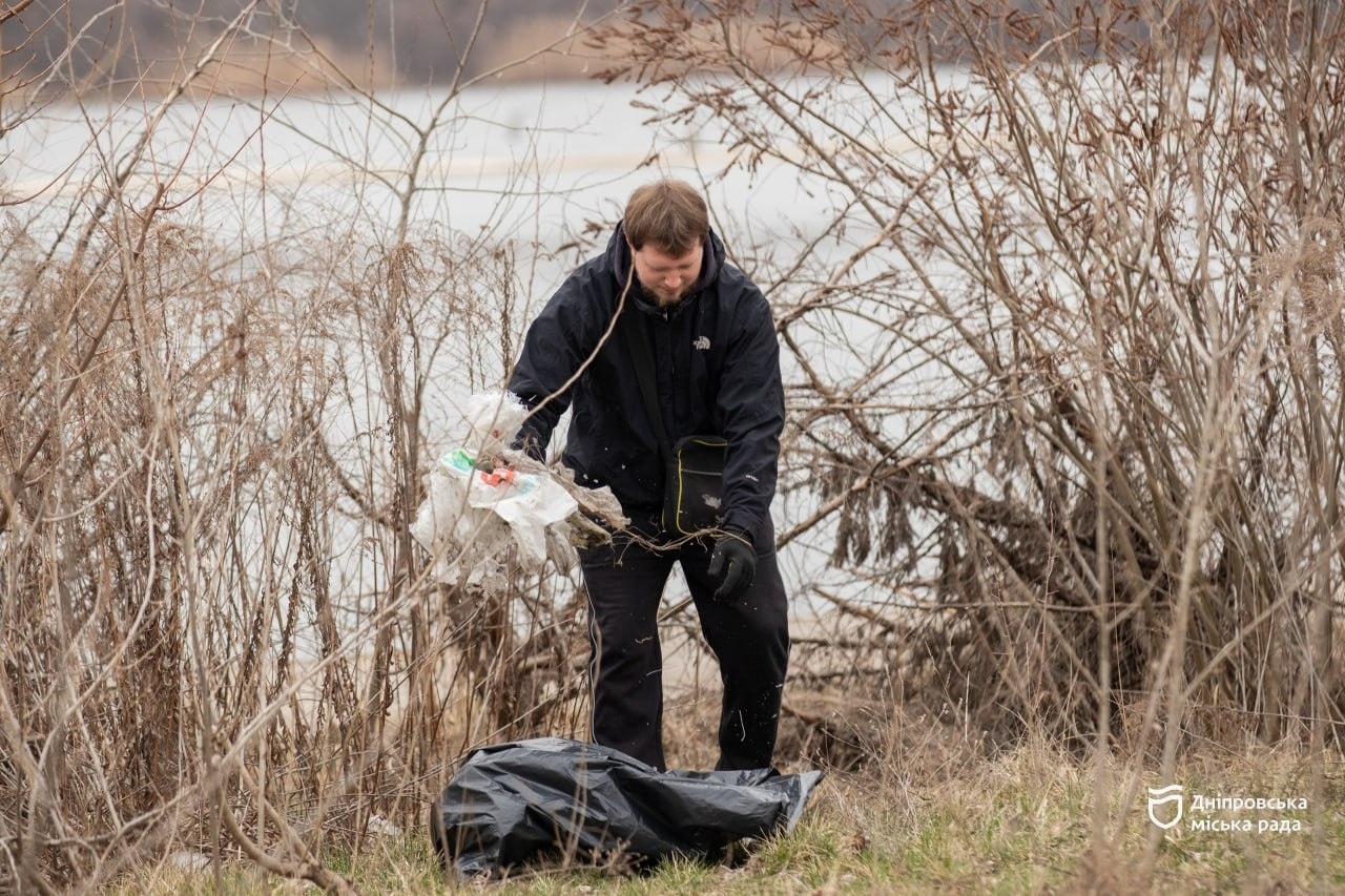 #Чистий_Дніпро: на Набережній Перемоги прибрали територію від сміття поруч із річкою