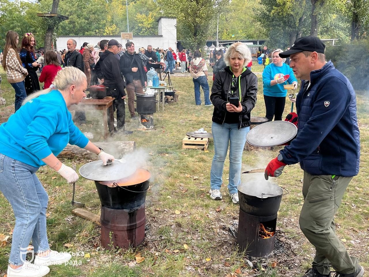 На кулінарному майданчику просто неба приготували 7 казанів борщу, а це 210 літрів тепла та смаку у різних варіаціях, серед яких: полтавський, капусняк, пісний, борщ із м’ясом індички, вегетаріанський та два традиційних червоних борщи. Гості також пригощалися традиційними українськими смаколиками.