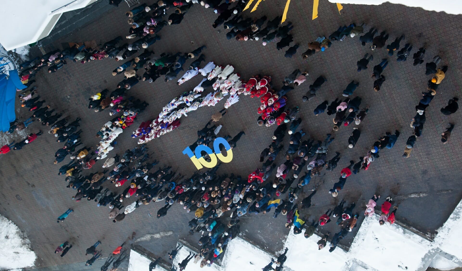День Соборності в Дніпрі святкують з самого ранку. Ще до початку занять сто курсантів символічно вишукувались у формі серця біля будівлі університету внутрішніх справ аби присягнути на вірність державі та продемонструвати любов до Батьківщини. А вже за декілька годин чиновники та активісти традиційно поклали квіти та заспівали гімн біля пам’ятника Тарасові Шевченку.