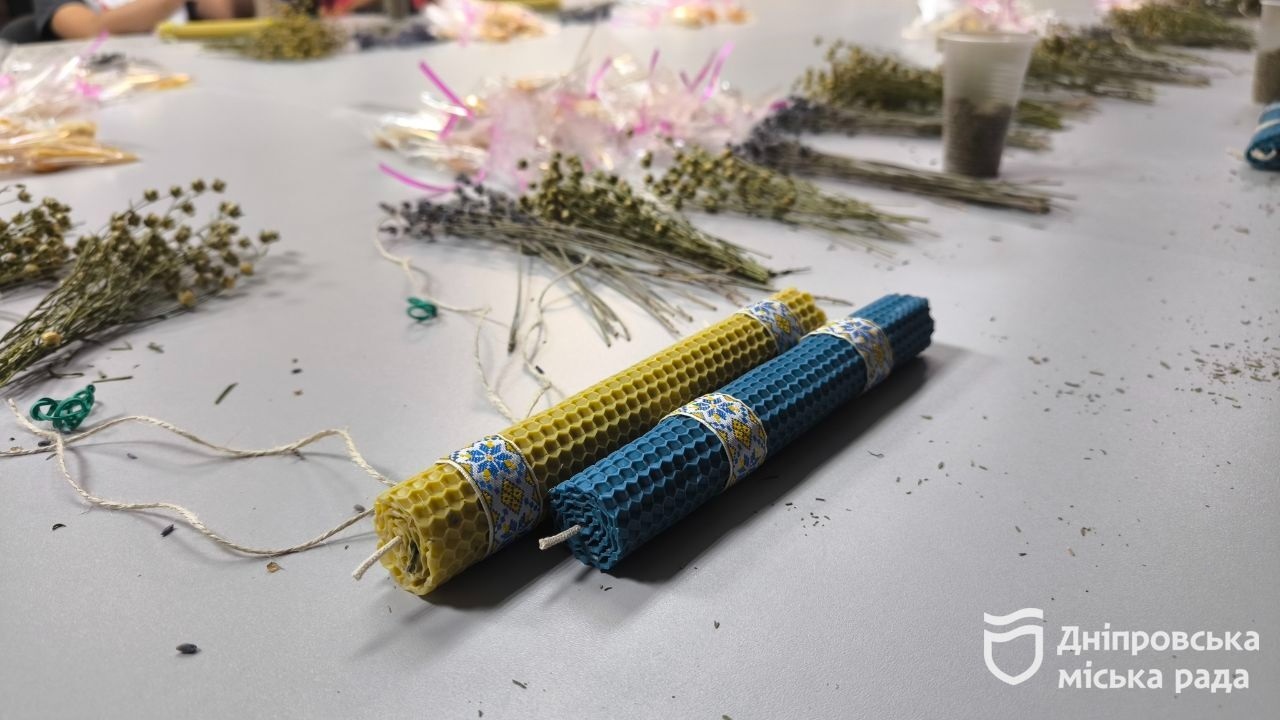 Яскраві емоції, ароматичні саше та українські карамельки. У Дніпрі для родин ветеранів пройшов майстер-клас з виготовлення свічок з вощини.