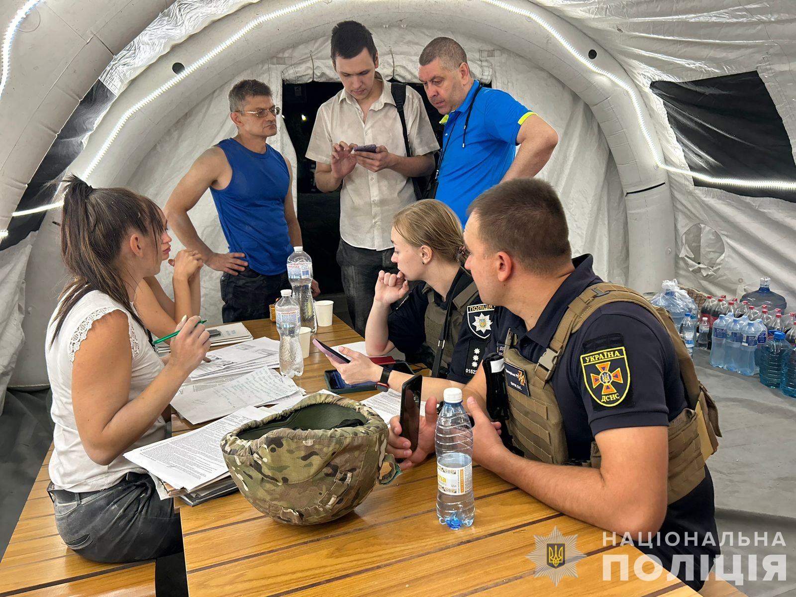 Для допомоги людям на місці ракетного удару по готелю поліція Кривого Рогу розгорнула мобільний пункт