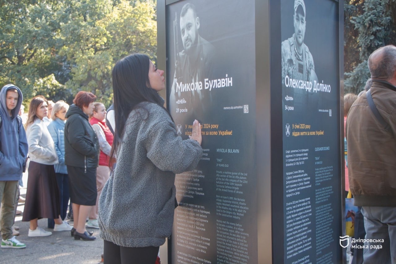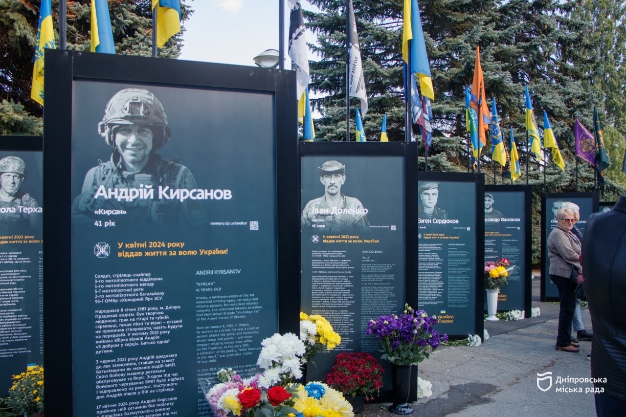 «36 історій захисників, які дивляться на нас зі стел, дивляться і з небес. Їхня найбільша мрія — щоб ми не здалися і не капітулювали. Завдання громади Дніпра — пам’ятати полеглих героїв, підтримувати ЗСУ, бути єдиними та наближати перемогу, щоб жертва воїнів не була марною», — прокоментував заступник міського голови Дніпра Андрій Денисенко.