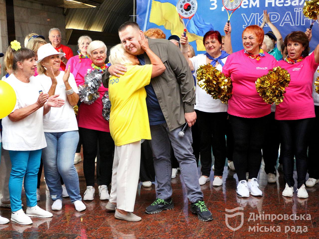 У Дніпрі напередодні Дня Державного Прапора та 34-ї річниці незалежності України учасники започаткованого мером Борисом Філатовим муніципального проєкту “Університет третього віку” влаштували видовищне свято.