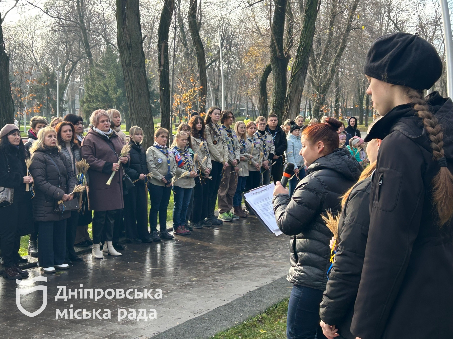 «Захід присвячений Дню пам’яті жертв Голодоморів 1932–33 та 1946–47 років. У червні 1933 року щохвилини помирало 500 дітей. Ми мусимо пам’ятати, щоб не дати ворогу знищити нашу ідентичність», — підкреслила заступниця директора департаменту молодіжної політики, української національної та громадянської ідентичності Дніпровської міськради Тетяна Журова.