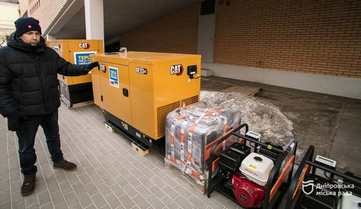 Територіальній громаді Дніпра передано: 6 генераторів потужністю від 8 до 23,7 кВт; 2 інверторні блоки по 6 кВт; 2 акумуляторні блоки по 6 кВт; дизельну електрогенераторну установку BAUDOUIN потужністю 350 кВА.