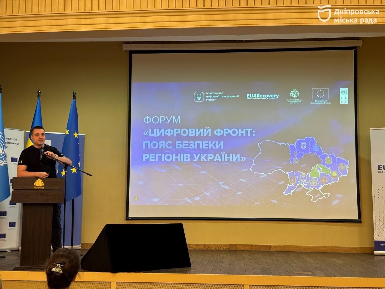 У Дніпрі пройшов форум «Цифровий Фронт: пояс безпеки регіонів України». Його організувала обласна влада спільно з Програмою розвитку ООН (ПРООН) в Україні та за участю Міністерства цифрової трансформації України. Одним із ключових елементів форуму стала презентація міської програми «Безпечне місто» та візит до Ситуаційного центру Дніпра.