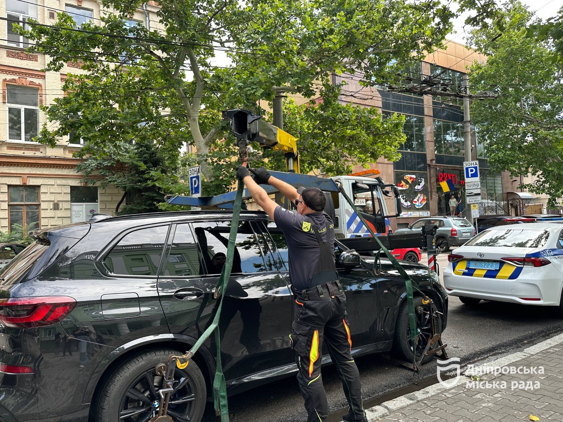 «Сьогодні, 17 липня, ми вийшли на вулицю Володимира Мономаха, щоб виявити правопорушення, зокрема транспортні засоби без номерних знаків. Один із таких автомобілів BMW залишено на паркомісці, інший — припарковано з порушенням правил дорожнього руху (ближче ніж за 10 метрів до виїзду з території). Обидва без номерів. Скоріше за все, номери зняли навмисно, щоб уникнути штрафів. У таких випадках ми переміщуємо авто на спеціальний майданчик на вулиці Курсантській», — пояснив заступник директора департаменту транспортної інфраструктури Дніпровської міської ради Ігор Швецов.