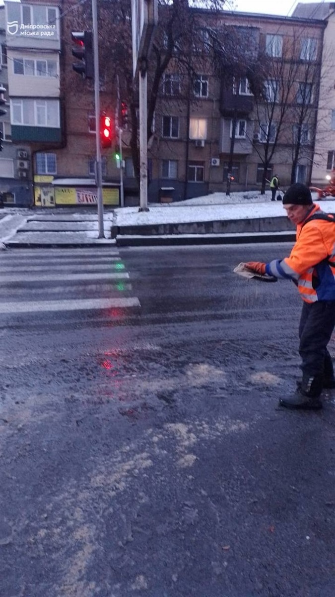 Станом на 7 ранку на вулицях Дніпра вже працювали: 41 піскорозкидач, 4 навантажувачі, 7 одиниць мінітехніки та 500 працівників, які забезпечують безпечний проїзд і пересування містом.