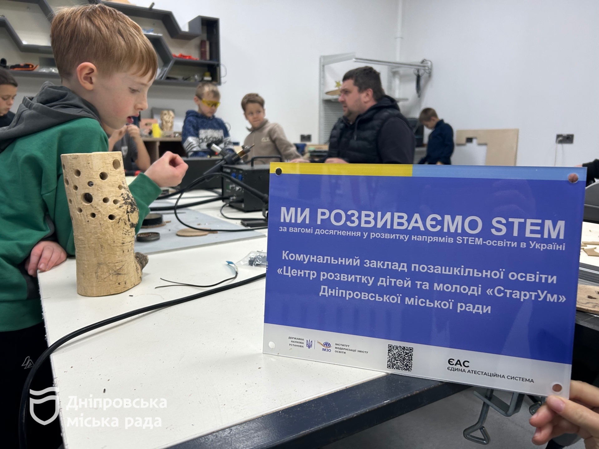 У Дніпрі відзначили міський Центр розвитку дітей та молоді «СтартУм» за вагомий внесок у розвиток STEM-освіти в межах обласного проєкту «STEM на Дніпрі». Як приклад, учасники гуртка «Технічне моделювання» втілюють власні технічні ідеї та створюють інженерні моделі.