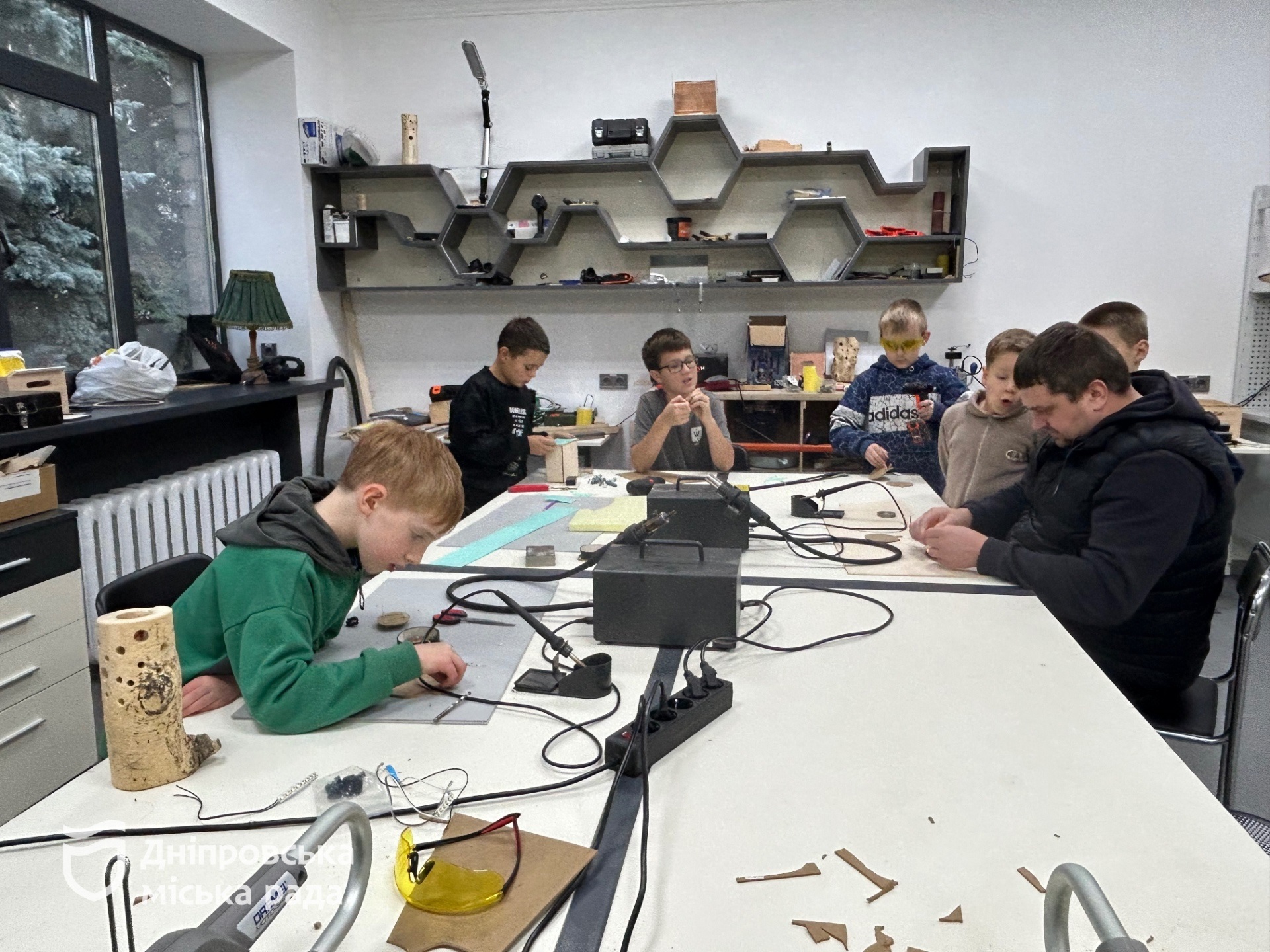 «У нас займаються дві групи — діти від 6 до 18 років. Ми вчимося працювати з різними інструментами, створюємо вироби, які цікаві самим вихованцям. Якщо у дитини є задум, ми допомагаємо його реалізувати. Так діти набувають технічних і комунікативних навичок, які стануть у пригоді в майбутньому, навіть під час вибору професії», – зазначив Олександр Луценко.