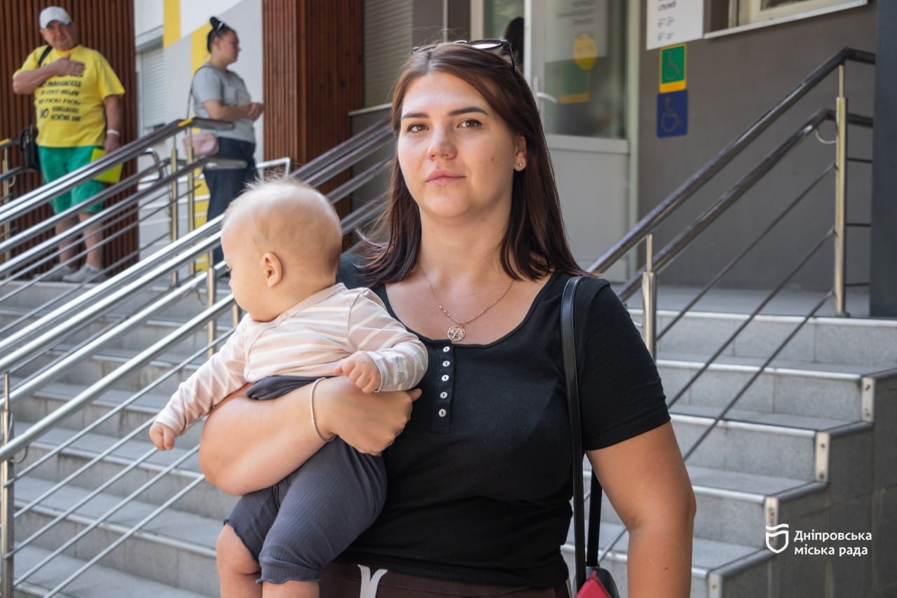«Дуже вдячна, що у Дніпрі допомагають переселенцям. Для людей, які втратили свої домівки, це вкрай важливо», — переселенка з Донецька про отримання комплекту одягу для дитини