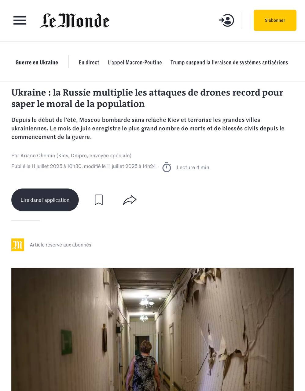 Мер Дніпра Борис Філатов дав коментар газеті «Le Monde», яку вважають найвпливовішим виданням Франції. На прикладі Дніпра стаття описує терористичну тактику рф, що прагне підірвати моральний дух українців. Увесь матеріал проілюстровано світлинами з Новокодацького району, на який декілька тижнів тому прийшовся один з найзухваліших ударів за весь період повномасштабної війни.
