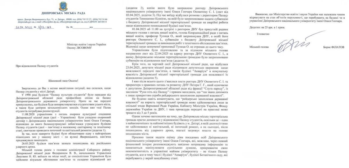 Читайте також: Міськрада Дніпра офіційно запропонувала гроші на реконструкцію Палацу студентів (Потьомкінського палацу), але ректор влаштував істерику
