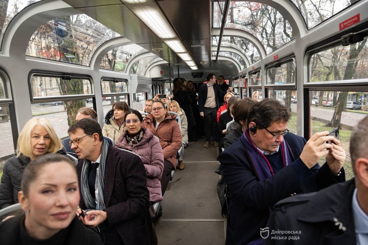 Флагманський проєкт «Рух без бар’єрів» у Дніпрі: посли країн-партнерів та представники міжнародних дипмісій випробували перший трамвайний маршрут