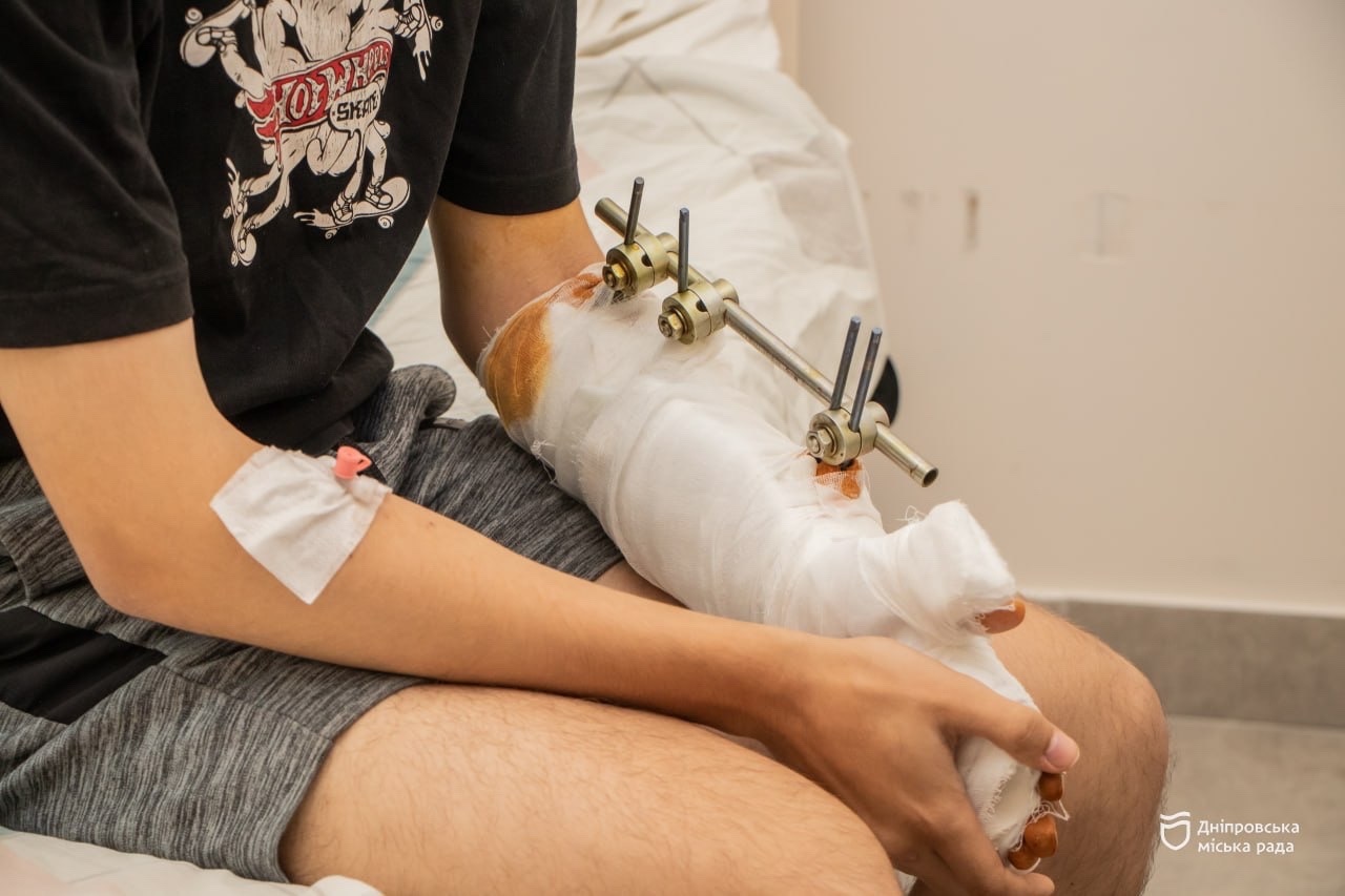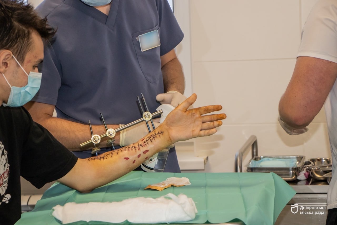 «Арсеній отримав поранення 3 серпня, а 8-го був доставлений до нас. На етапах евакуації йому встановили апарат зовнішньої фіксації. У нашій лікарні ми провели три оперативні втручання: закриття вогнепальних поранень та дефектів м’яких тканин. Наступним етапом буде остеосинтез променевої кістки та відновлення пошкоджених нервів. Це тривалий процес, лікування і реабілітація можуть тривати до пів року», – пояснює хірург-ортопед Ігор.