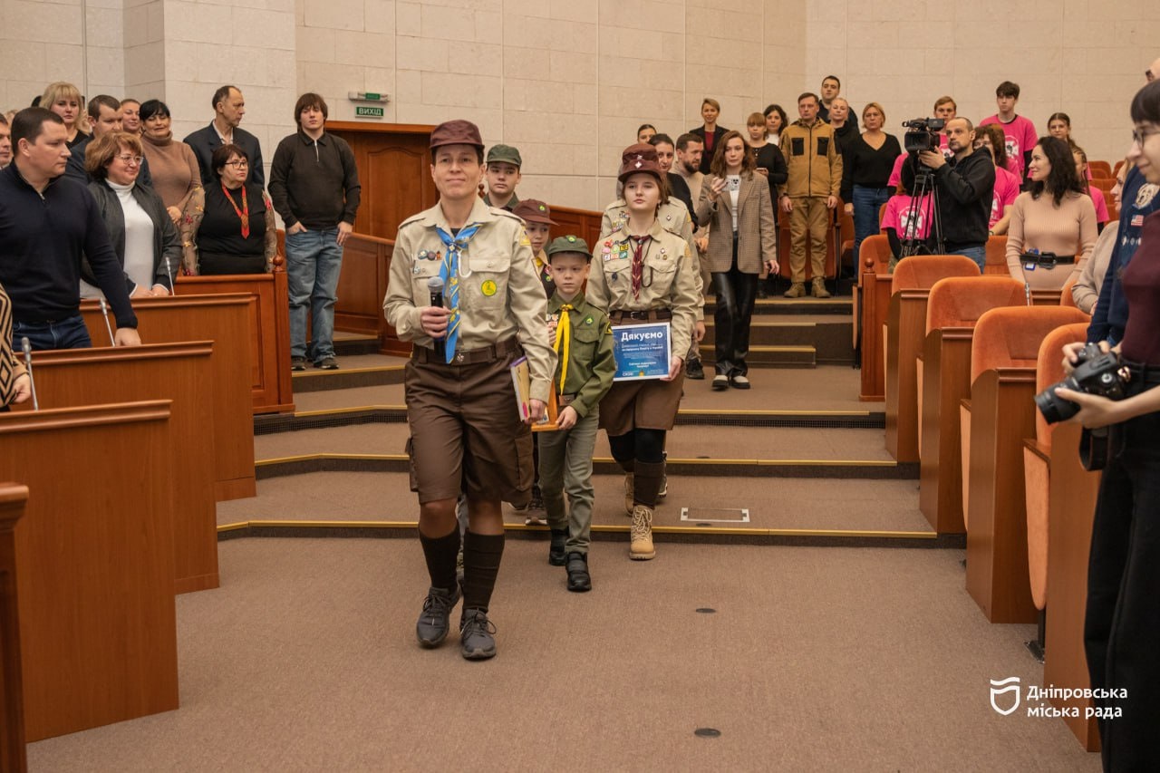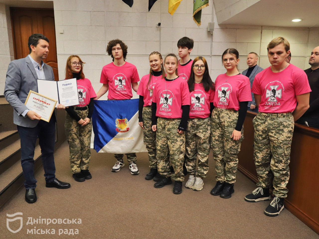 Також на початку сесії нагородили команду, яка перемогла у національно-патріотичній грі «Сокіл» («Джура»). Це дніпровський ліцей № 129. Окрім подяк, було вручено сертифікат на придбання пневматичних гвинтівок.