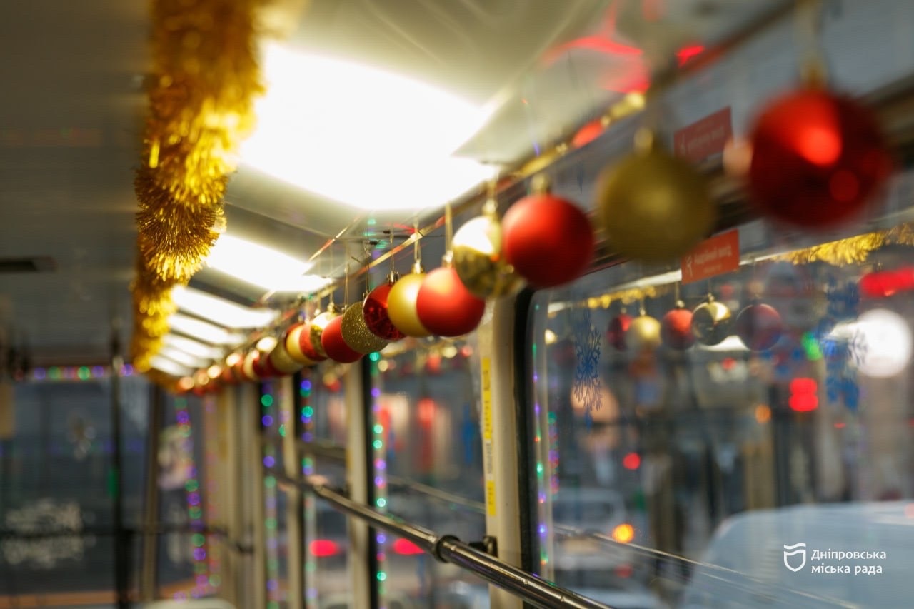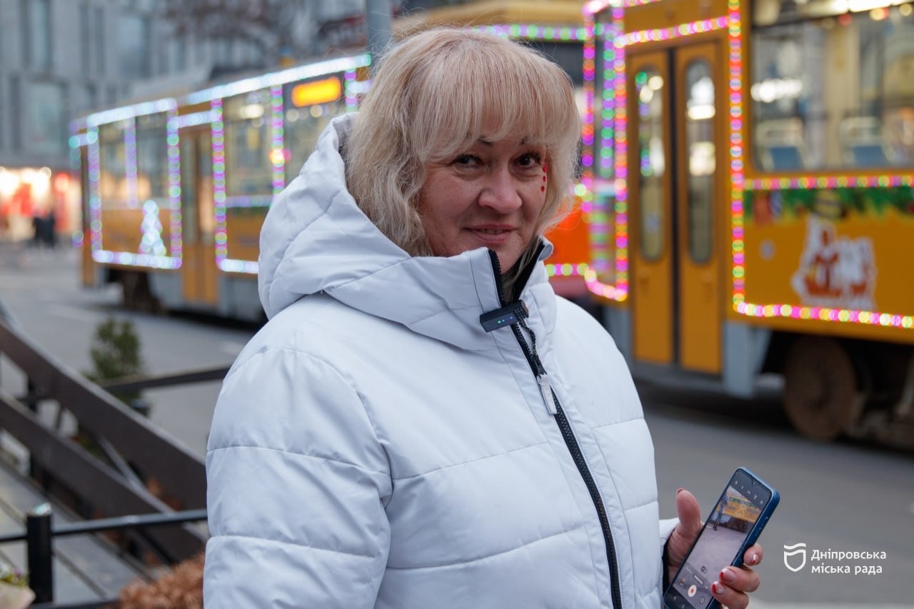 «Я вражена тим, як Дніпро, попри все, намагається зберегти святковий настрій. Це неймовірно піднімає настрій», – дніпрянка про прикрашений до Різдва святковий трамвай