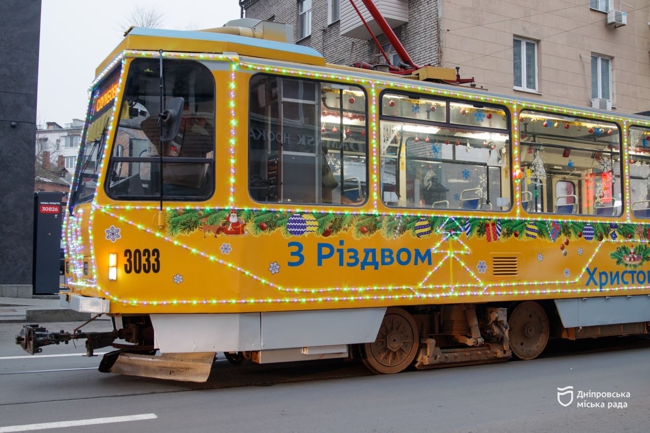 У Дніпрі напередодні Різдва та Нового року містом почали курсувати святково прикрашені трамваї та тролейбуси, наповнюючи вулиці атмосферою свята й очікування дива. Все, аби подарувати містянам гарний настрій і нагадати, що навіть у складні часи для радості завжди є місце. Побачити оздоблений електротранспорт можна на всіх маршрутах міста.