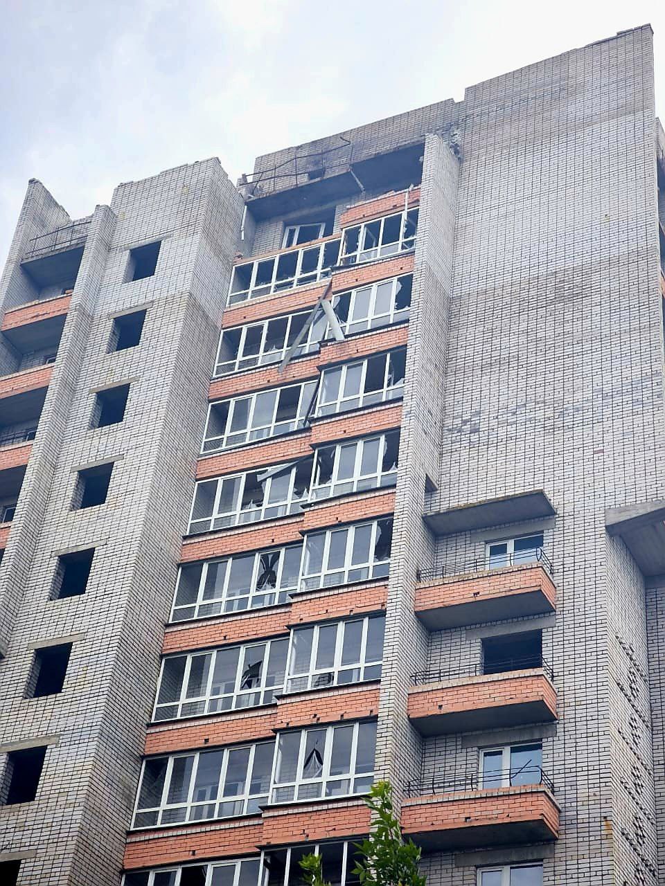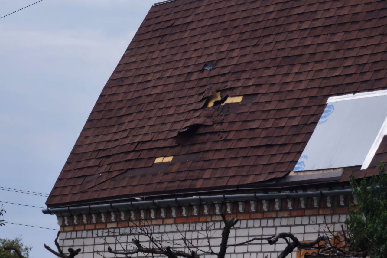 Пошкоджені багатоповерхівки, приватні будинки, господарська споруда, будівля, що не експлуатувалася. Побиті сонячні панелі.