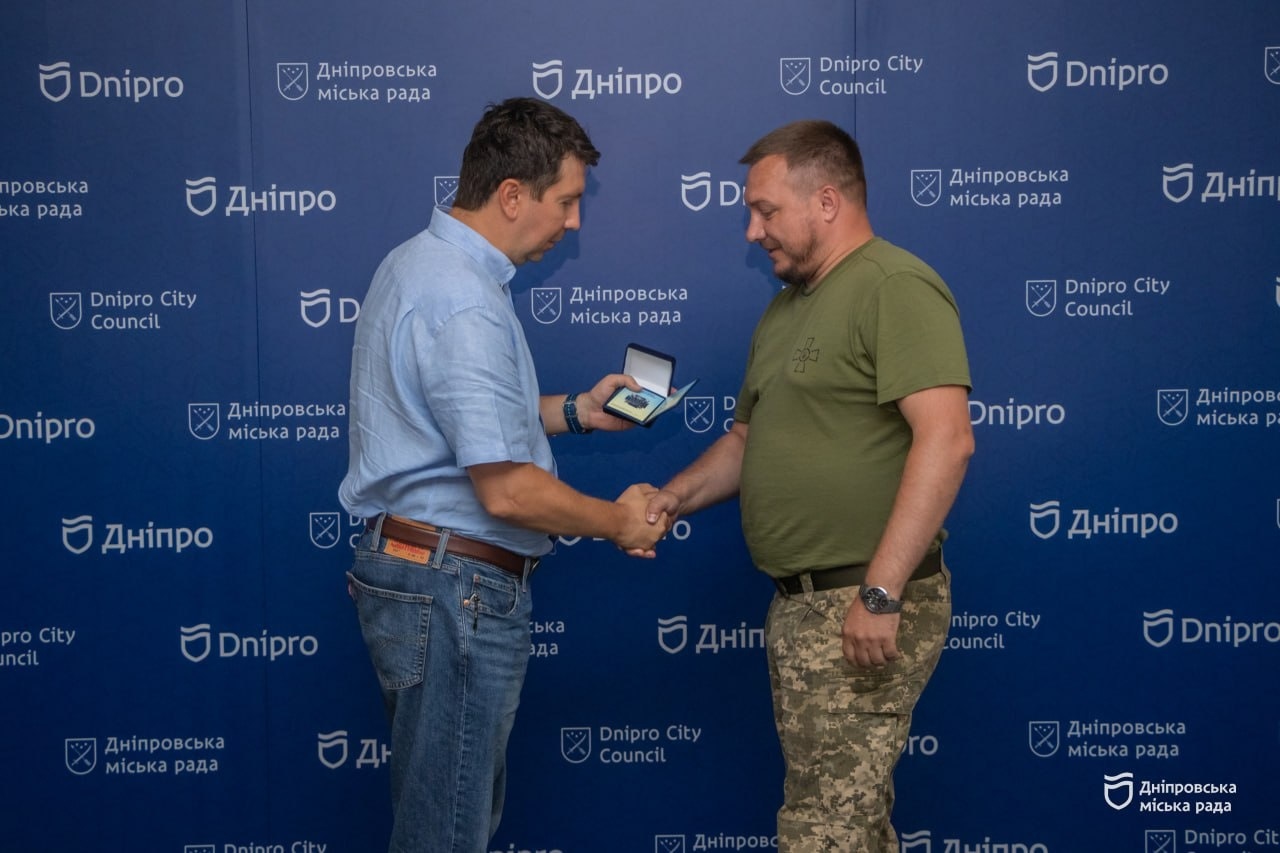 Серед нагороджених — Дмитро, який з перших днів повномасштабного вторгнення став до лав Збройних Сил України. Для нього ця медаль стала першою від мера Філатова.