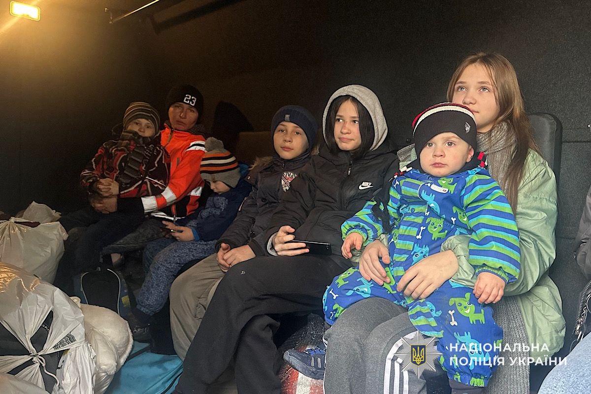 Із прифронтового Нікополя «Білі янголи» евакуювали 40-річну Ольгу разом зі своїми семирічними дітьми віком від 2 до 16 років. Сім’я мешкала на прибережній частині міста, що постійно піддавалася обстрілам з артилерії та ударів дронів, повідомили у пресслужбі Національної поліції України.