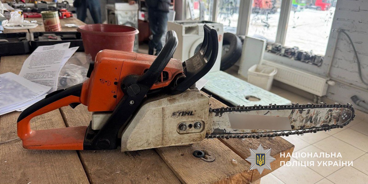 Було вилучено бензопили, документи щодо обігу деревини, дровокол, понад 100 кубометрів спиляних дерев сосни та тополі, пелети для опалення та дрова.