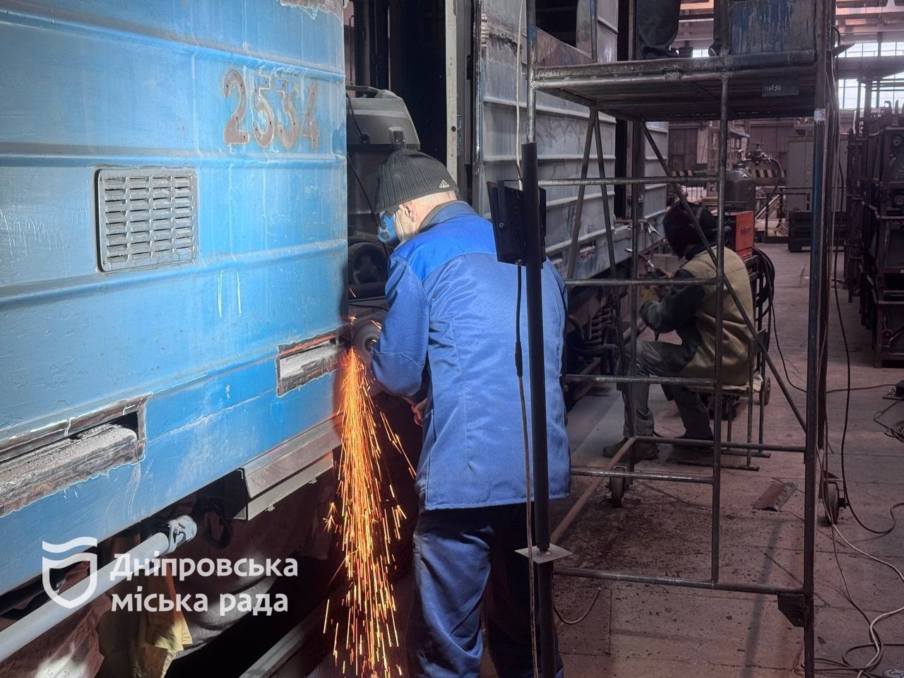 «Вже у нинішньому 2026 році продовжується ремонт вагона, розпочатий восени 2025-го. Ремонт вагона № 2534 виконується за графіком. Його розібрали, проводиться дефектування деталей механічного, пневматичного та електричного обладнання. Колісні пари вагона підготовлені до відправлення для заміни колісних центрів, а також буксових та редукторних підшипників. Також очікується заміна рам візків на нові», – розповів заступник директора департаменту транспорту та транспортної інфраструктури Дніпровської міської ради Олександр Лещенко. Він 11 січня чергує містом.