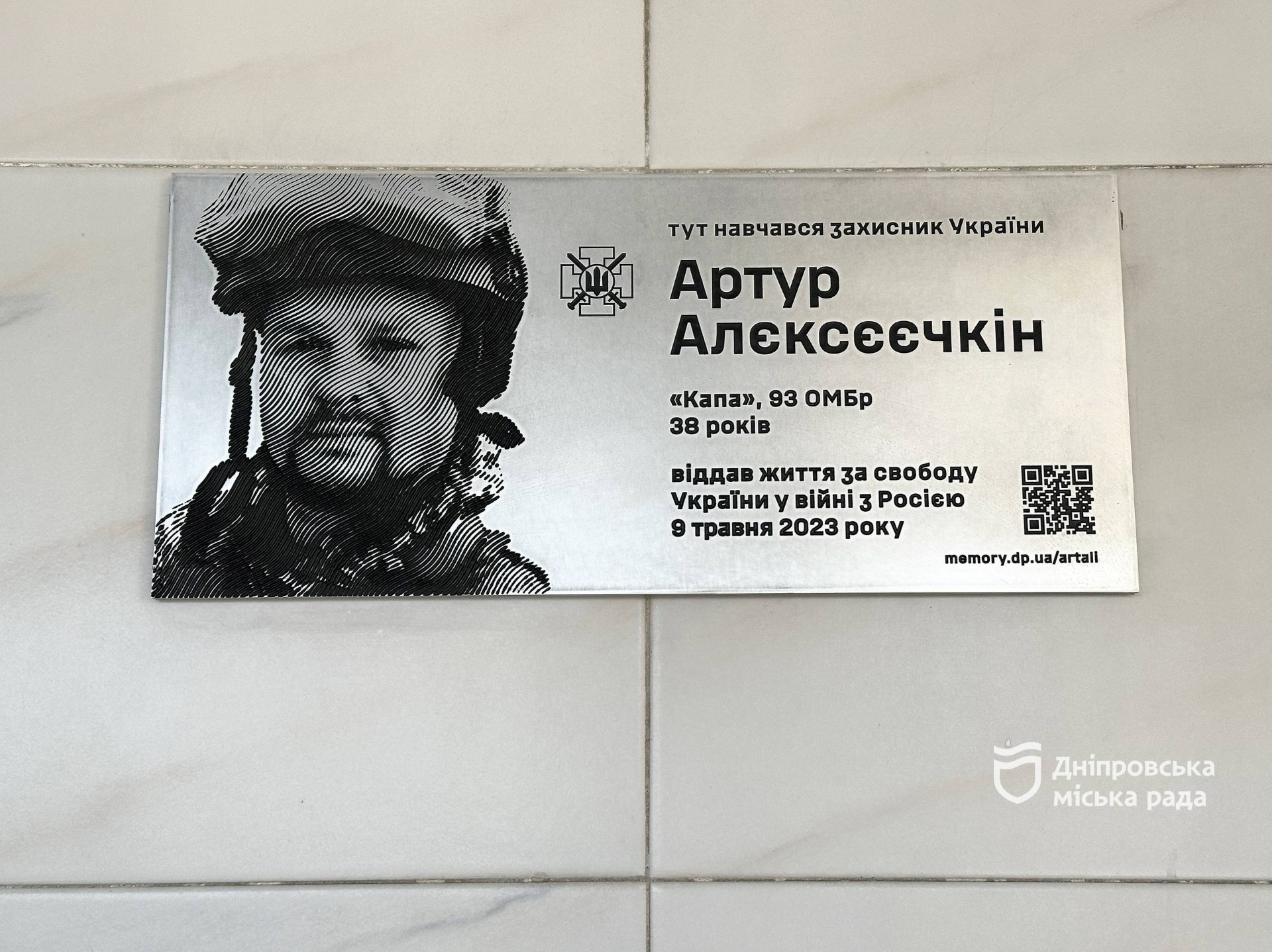 У Дніпрі продовжують встановлювати меморіальні дошки загиблим захисникам. Сьогодні така табличка у пам’ять про Артура Алєксєєчкіна з’явилась у гімназії № 115. До війни він працював у будівельній галузі. Був виконробом та мав власну фірму. Реалізував проєкти у Дніпрі, Києві та Львові. У 2014 році добровільно приєднався до лав ЗСУ. Брав участь в антитерористичній операції як радіотелефоніст. У перші дні повномасштабного вторгнення Артур знову став на захист держави.