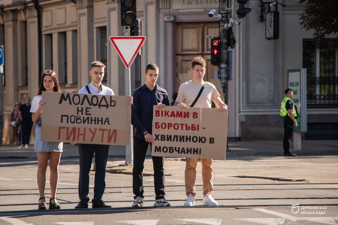 У Дніпрі провели меморіальний захід на честь українських юнаків та дівчат, які загинули, захищаючи свободу та незалежність нашої держави. О 09:00 на перехресті проспекту Дмитра Яворницького та вулиці Воскресенської біля міської ради молодь призупинила рух транспорту, щоб вшанувати полеглих хвилиною мовчання.