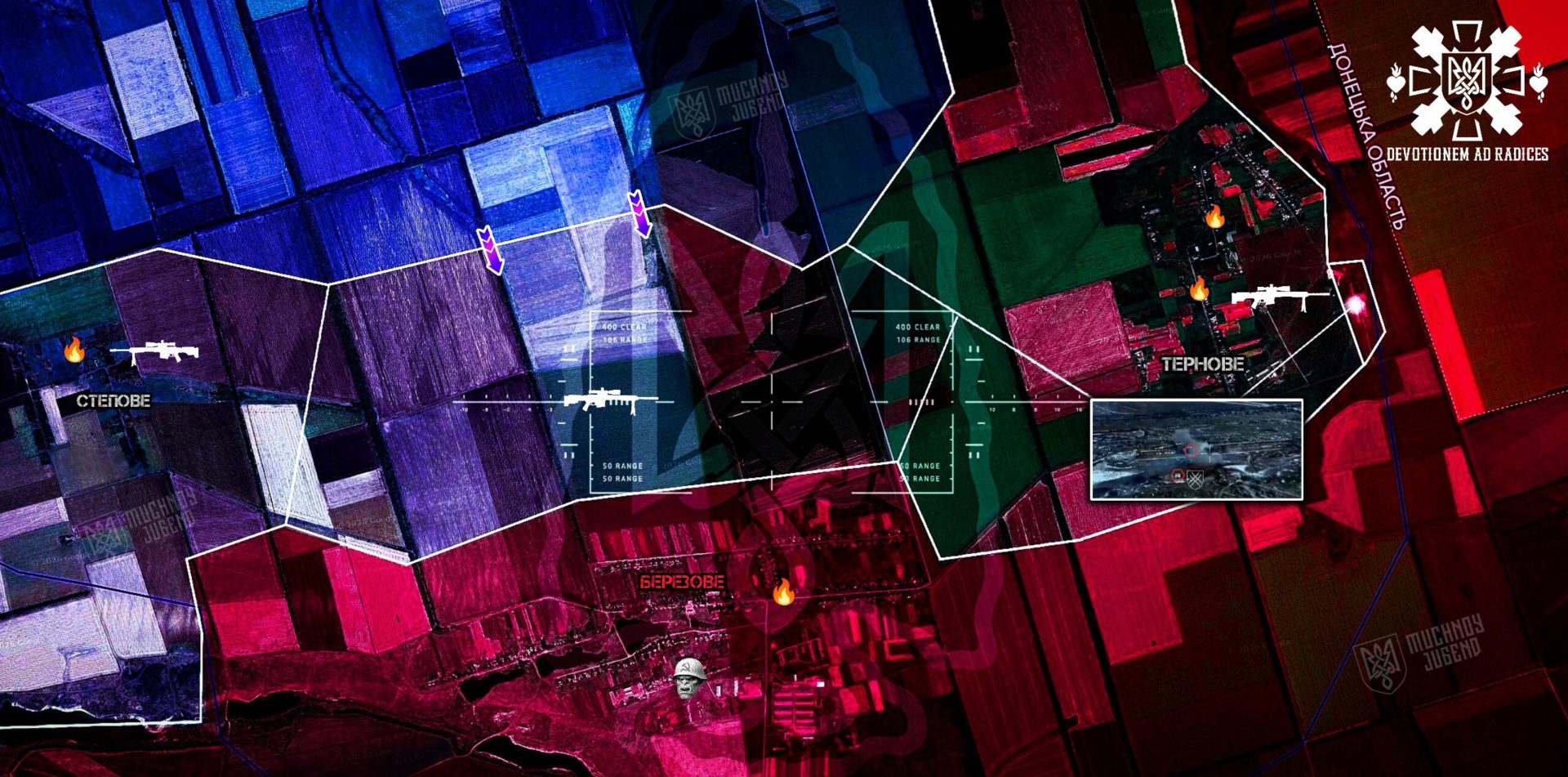 У районі населеного пункту Тернове триває поетапне розширення зони контролю у східному секторі. Паралельно підрозділи тиснуть на південному фланзі, витісняючи противника з проміжних позицій та лісосмуг. Повного контролю над населеним пунктом наразі немає — бої тривають за окремі укриття та підходи. За словами військового, застосовується тактика вогневого виснаження з подальшим просуванням малими групами та закріпленням.