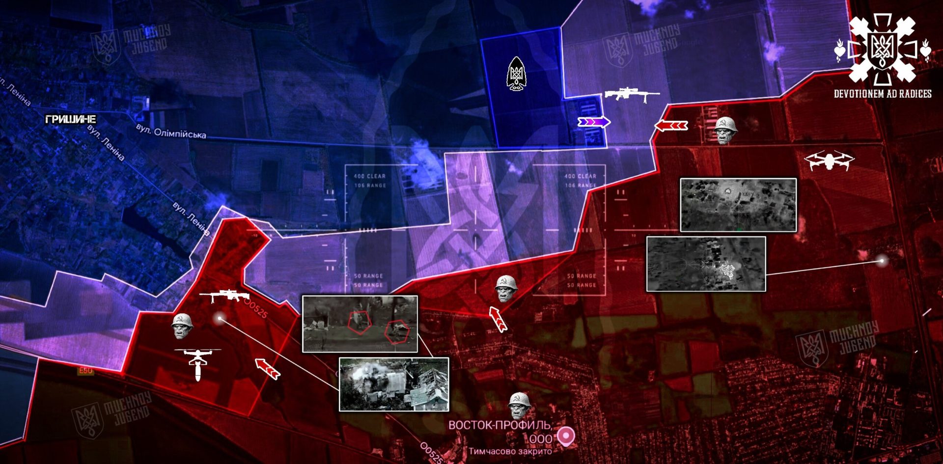 Такі спроби носять системний характер: подекуди ворогу вдається тимчасово закріпитися, однак утримати позиції надовго він не може — українські бомбери та піхотні підрозділи оперативно знищують виявлені осередки. Водночас зона активних бойових дій поступово розширюється, адже противник не полишає район повністю, зберігає постійну присутність і має можливість підтягувати резерви.