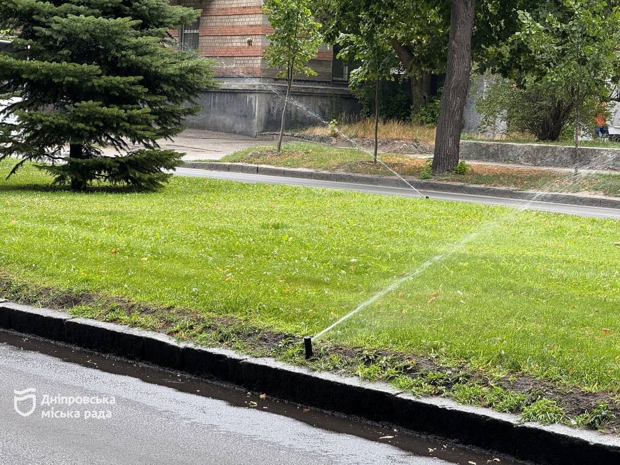 «У нас є два види поливу – автоматичний та за допомогою спецтехніки. Автоматично поливаються газони, які внесені до титульного списку. Загальна площа поливу – 29,3 га. Це Січеславська та Сонячна Набережні, бульвар Слави, проспекти Миру та Науки, сквер Героїв та біля Театру опери та балету, площа Героїв Майдану. За допомогою спецтехніки ми поливаємо зелені насадження, які розташовані на червоних лініях та внесені до титульних списків», — коментує начальниця виробничої дільниці Правобережна-1 КП «Міськзеленбуд» Катерина Редька.