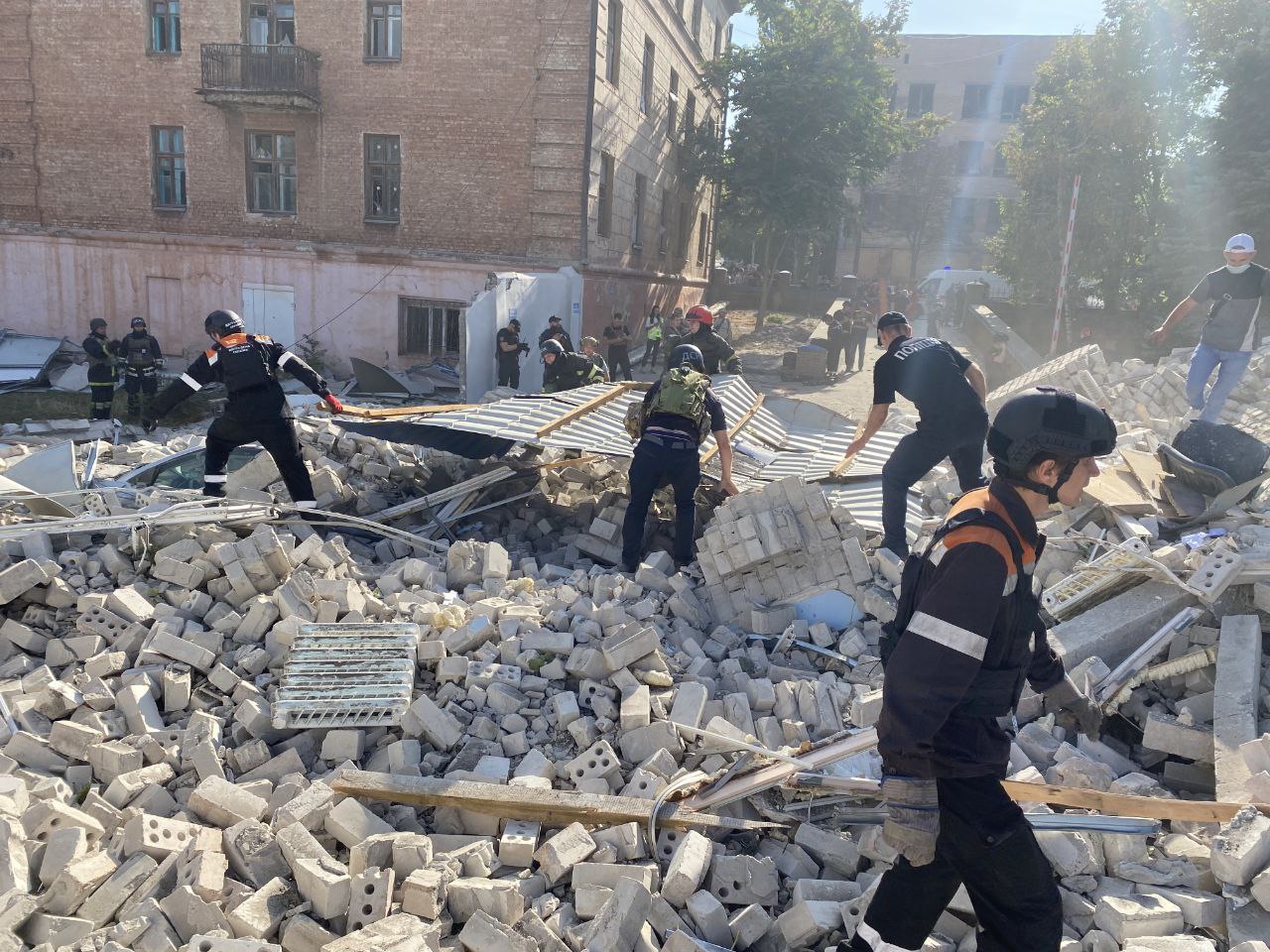 Станом на 16:21 кількість загиблих збільшилася до трьох. Під завалами адмінбудівлі дістали ще два тіла – чоловіка та жінки. Кількість постраждалих зросла до 6, повідомили в ОВА.