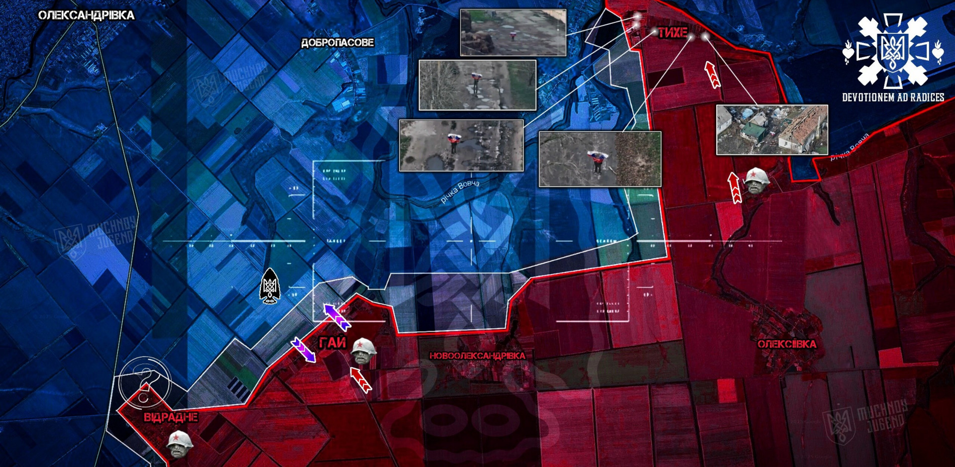 Підтверджено просування росіян у н.п. Тихе на південному березі р. Вовча. На кількох точках уже встановлені окупаційні прапори. Ворог намагається закріпитися та перетворити населений пункт на плацдарм для подальших дій.