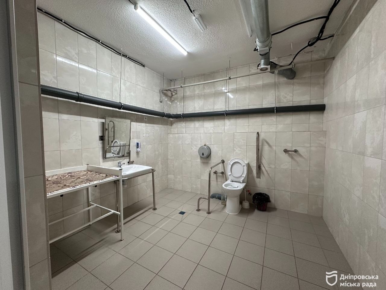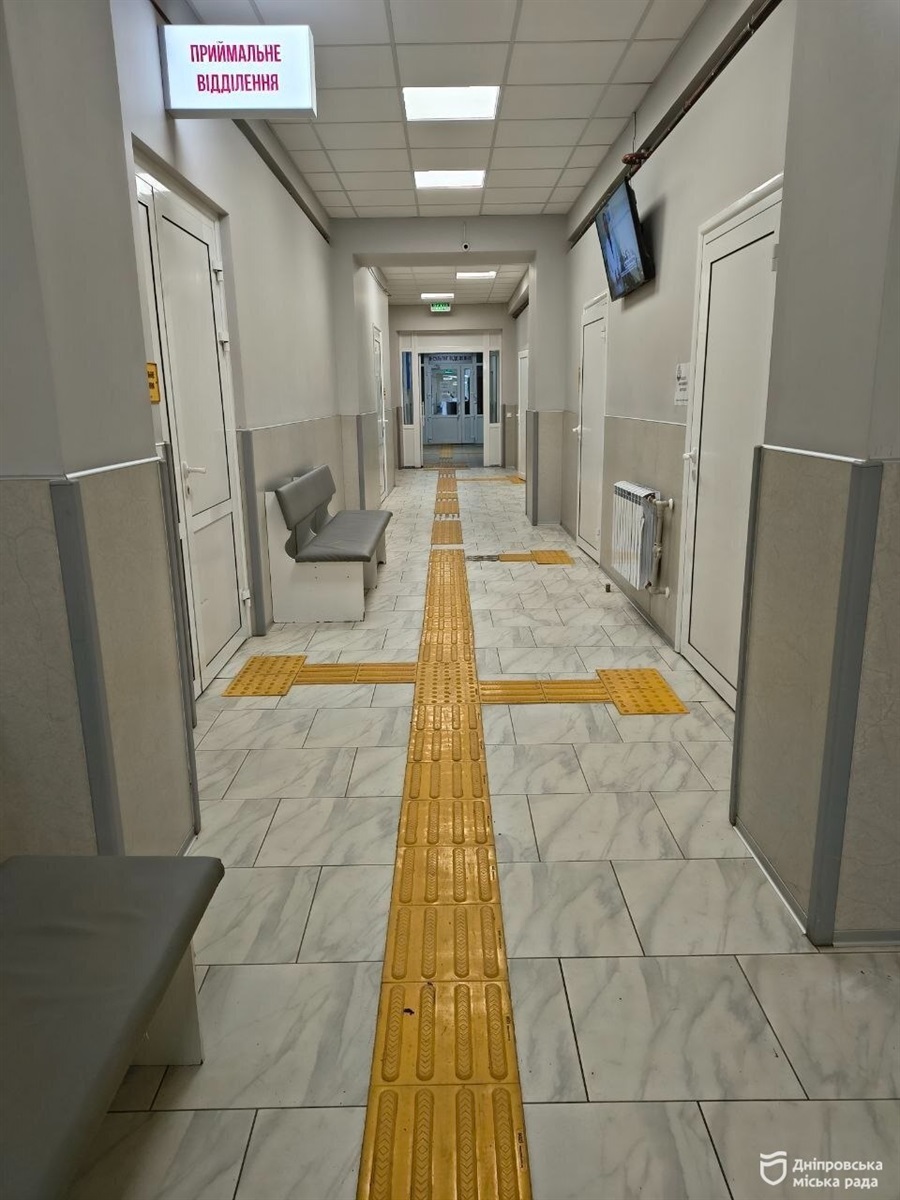 «У закладі відремонтовано ліфти, адаптовано внутрішні приміщення для вільного пересування на візках, у тому числі санітарні кімнати як на першому поверсі, так і в найпростішому укритті. Усі поверхи оснащено тактильними плитками та покажчиками, продубльованими шрифтом Брайля для кращої навігації осіб із порушеннями зору. Для безперешкодного доступу маломобільних груп до укриття встановлена спеціальна підіймальна платформа», – зазначила заступниця директора департаменту охорони здоров’я населення Дніпровської міської ради Олександра Бодня під час чергування містом 26 квітня.