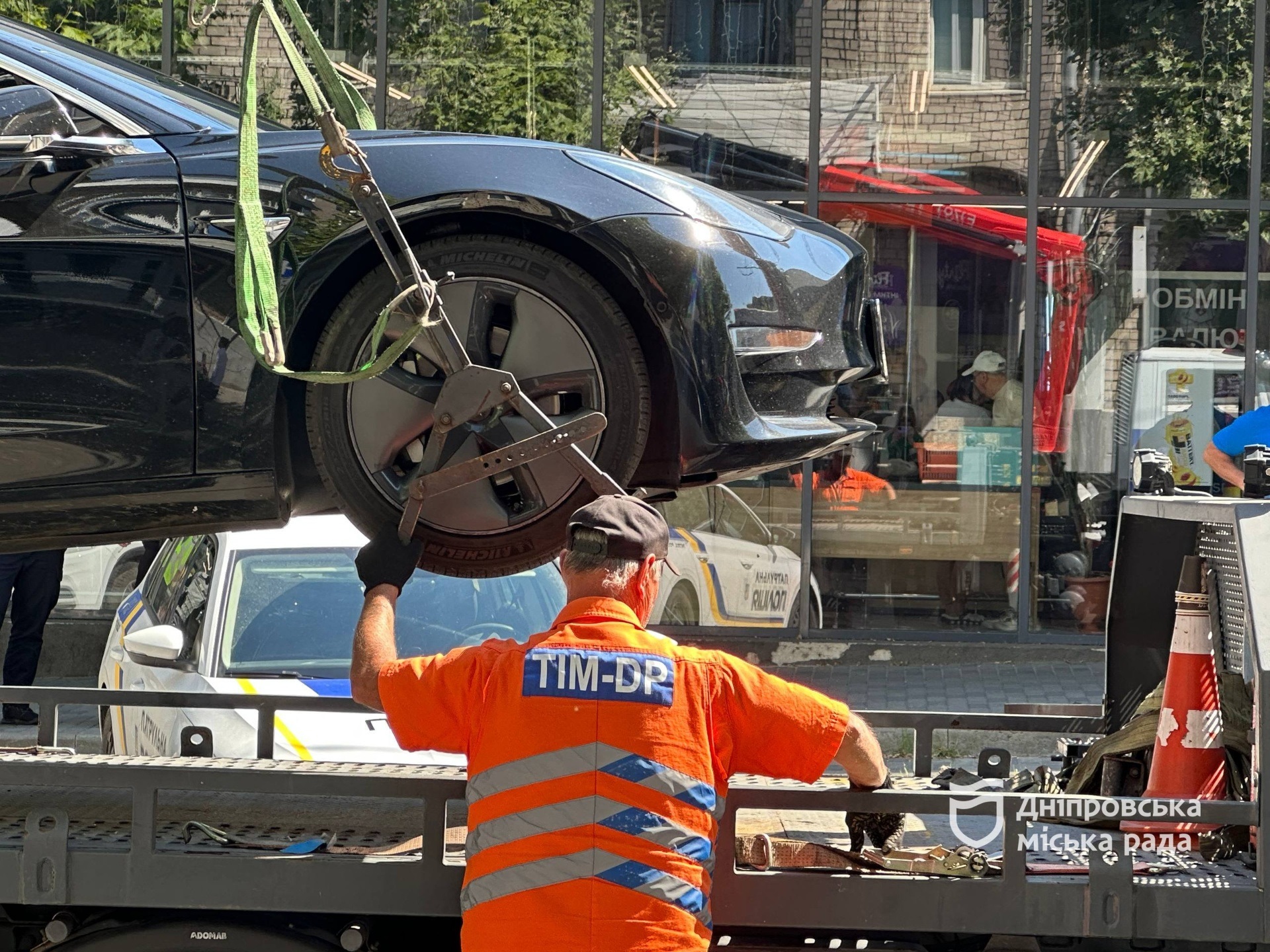 «Сьогодні ми перемістили транспортний засіб без номерів, припаркований на місці для людей з інвалідністю. Такі машини евакуюють на спеціальний майданчик за адресою: Курсантська, 7. Якщо під час складання акту з’являється власник і пред’являє документи, він повинен одразу встановити номерні знаки на авто», — додав інспектор з паркування інспекції з питань контролю за паркуванням Дніпровської міської ради Роман Назаров.