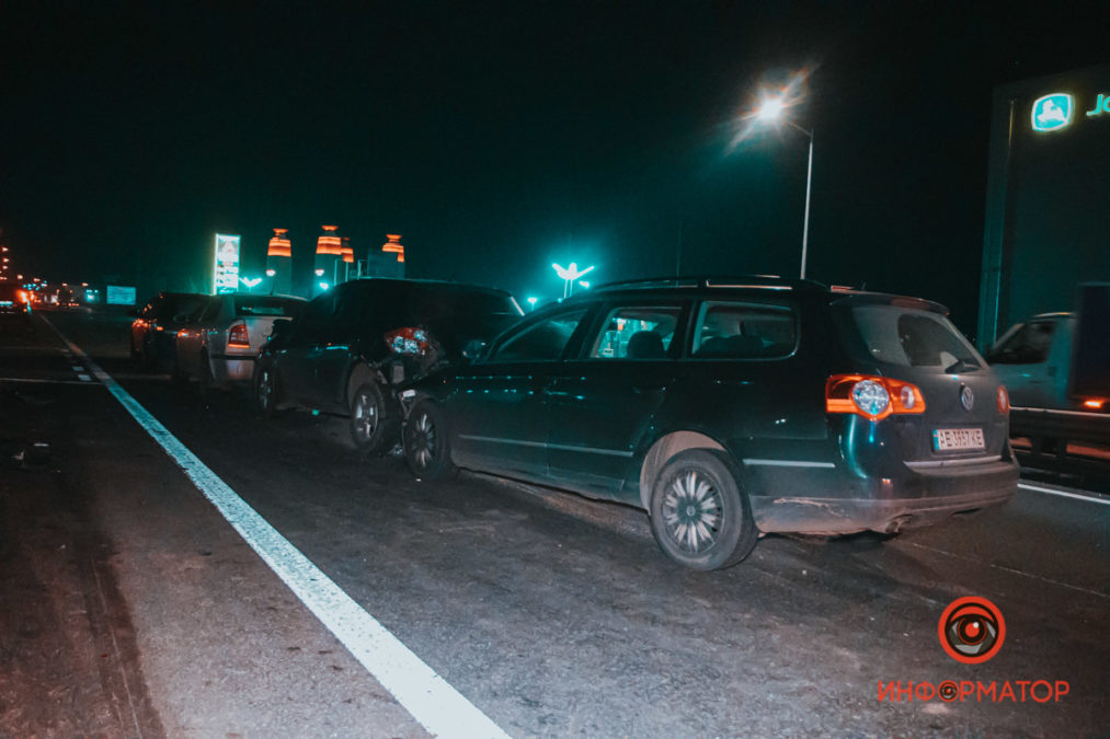 За попередньою інформацією, автомобілі рухалися у бік Новомосковська. Opel, який їхав попереду, різко загальмував і збирався повортати. В цей момент в нього врізалася Skoda, після чого за інерцією зіткнулись ще Toyota та Volkswagen.
