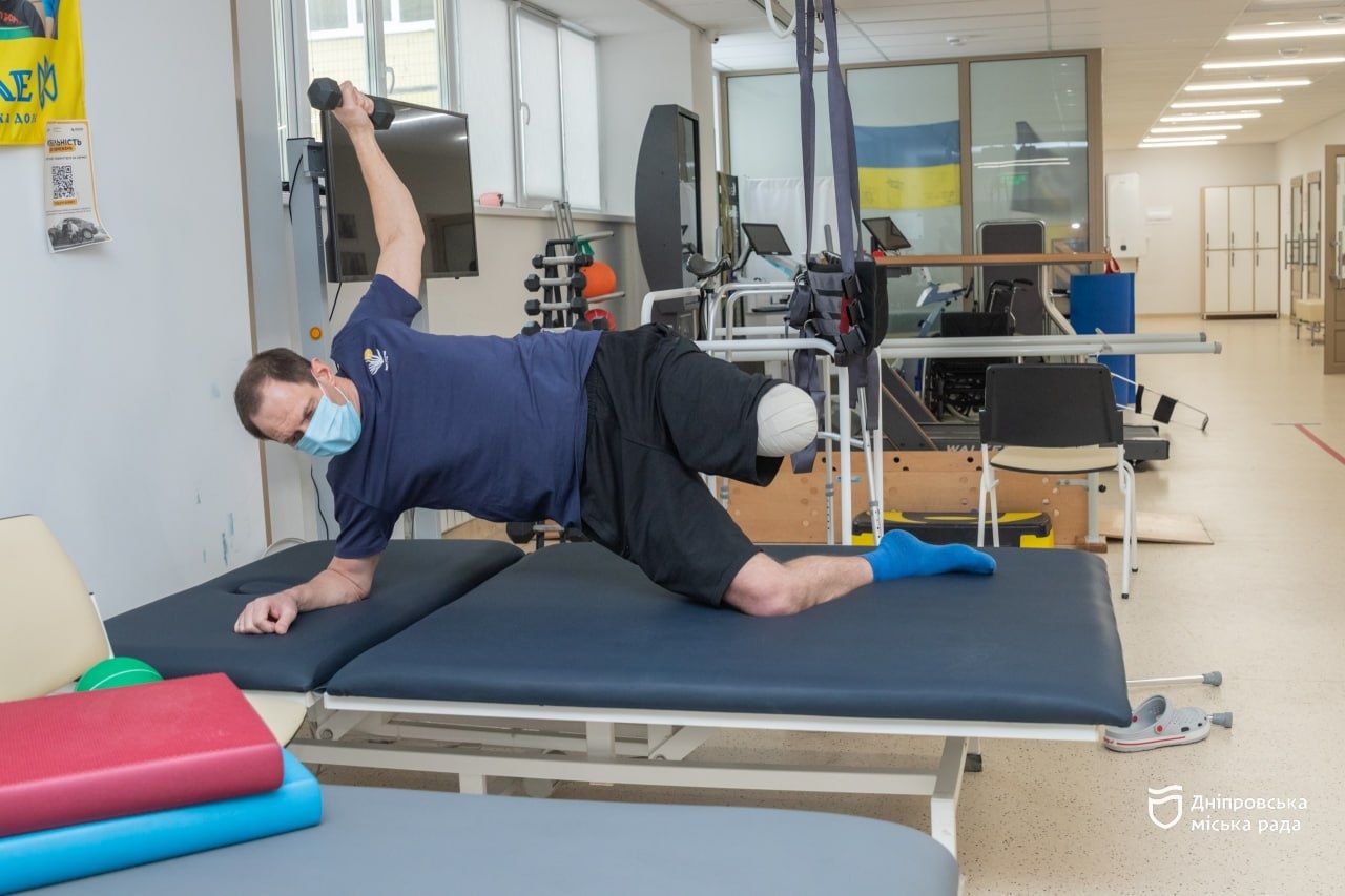 Захисник переніс кілька операцій і зараз продовжує відновлюватися в реабілітаційному центрі Дніпра. Попереду — допротезна підготовка та саме протезування.