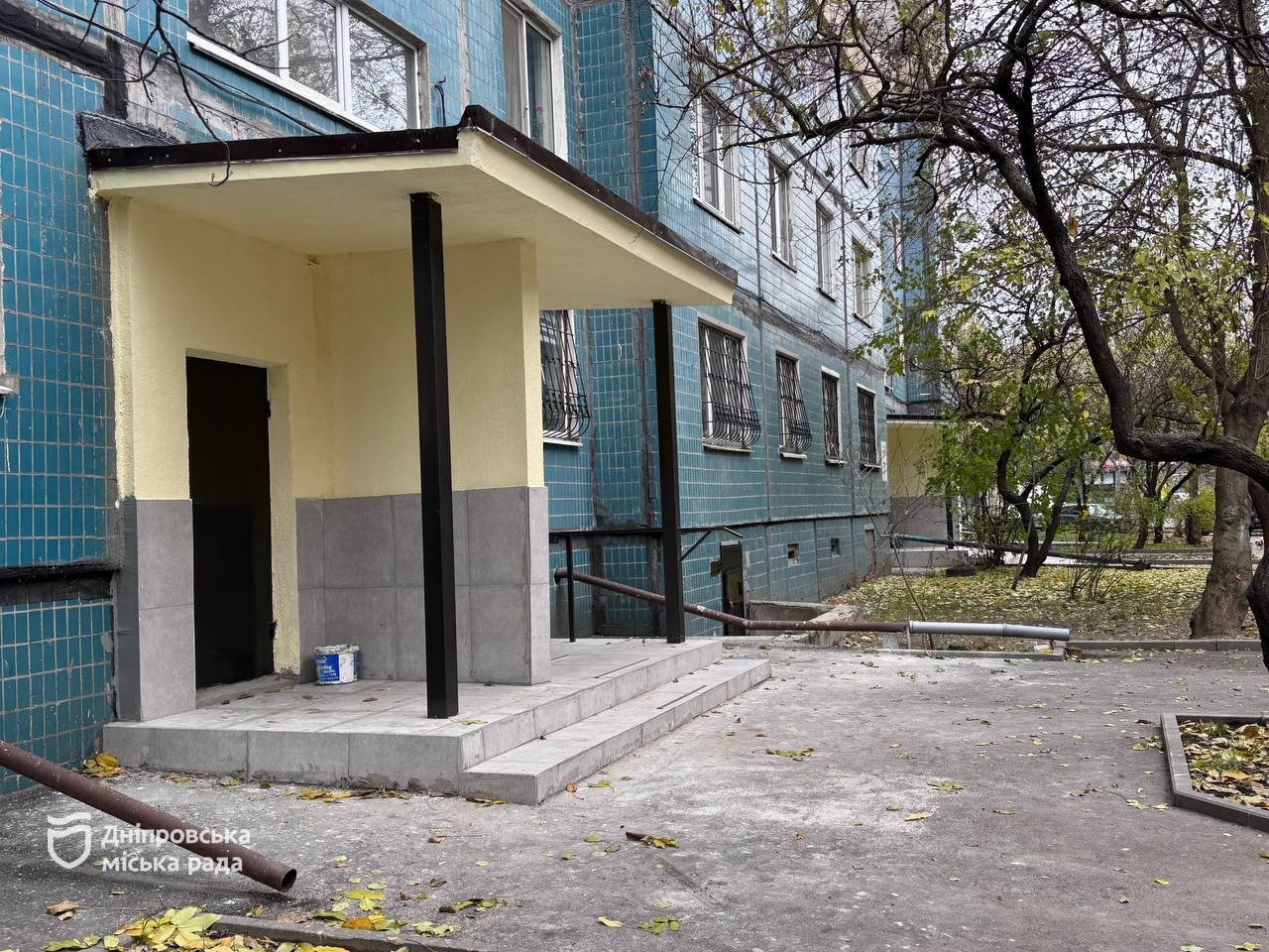«Після обстеження вирішили провести комплексний ремонт. Зверху піддаш зняли старе покриття, улаштували цементну стяжку та покрили новим руберойдом. Для безпеки встановили додаткові підпірні конструкції з перилами. Улаштували покриття з кахелю зі спеціальними протиковзовими елементами. Завдяки такому комплексу робіт не потраплятиме волога, а відтак – запобігаємо руйнації самої вхідної групи», — зазначив директор департаменту житлового господарства Дніпровської міської ради Сергій Файфер. Він 18 листопада є черговим по місту.