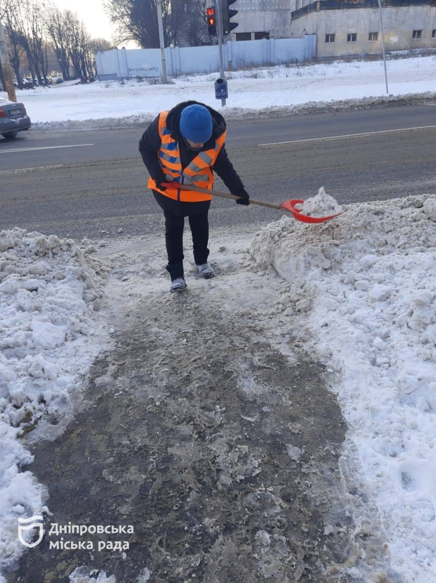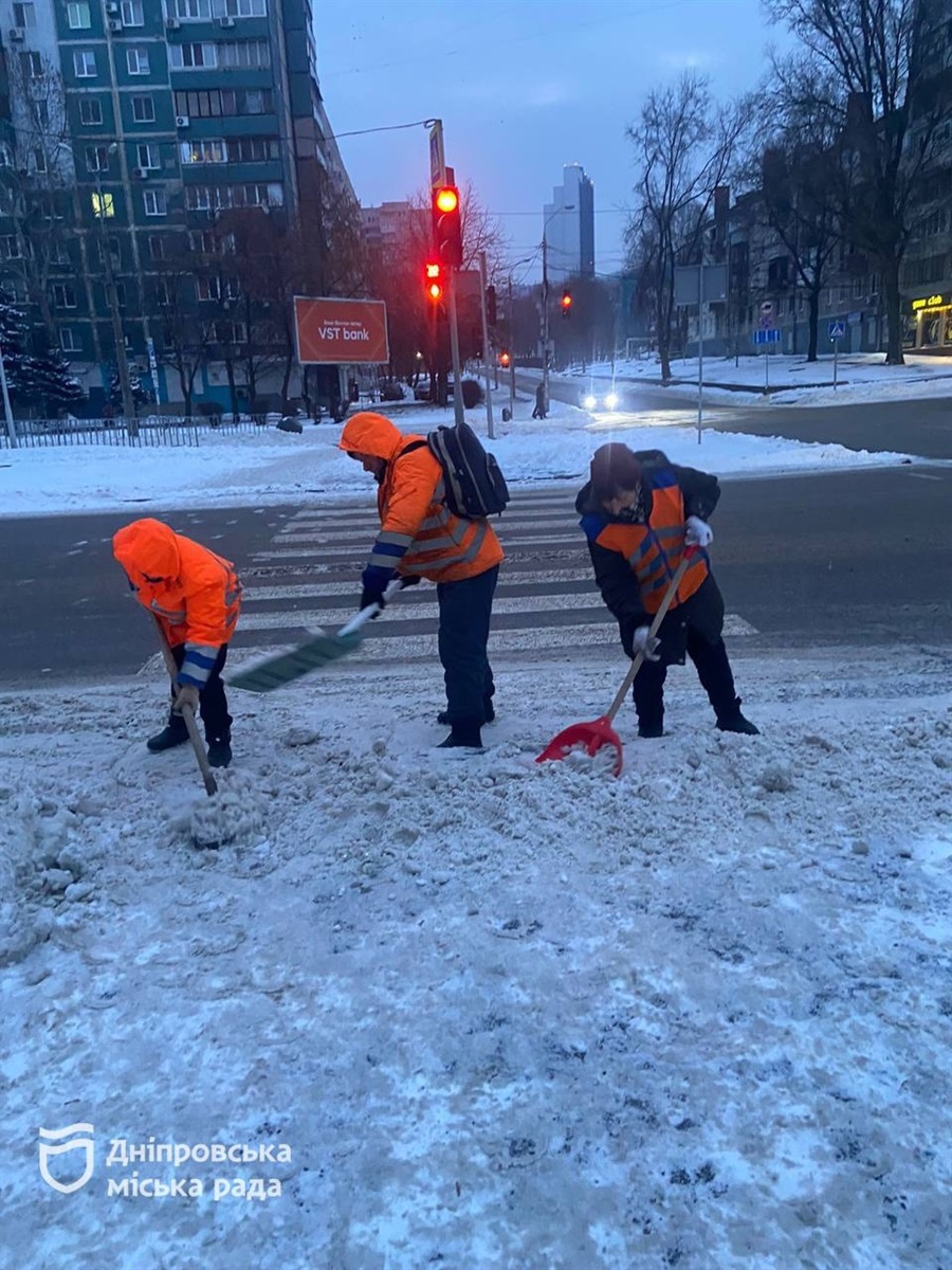 У Дніпрі за останню добу (12–13 січня) комунальні служби міста продовжували прибирати сніг та обробляти дорожнє покриття протиожеледними матеріалами.