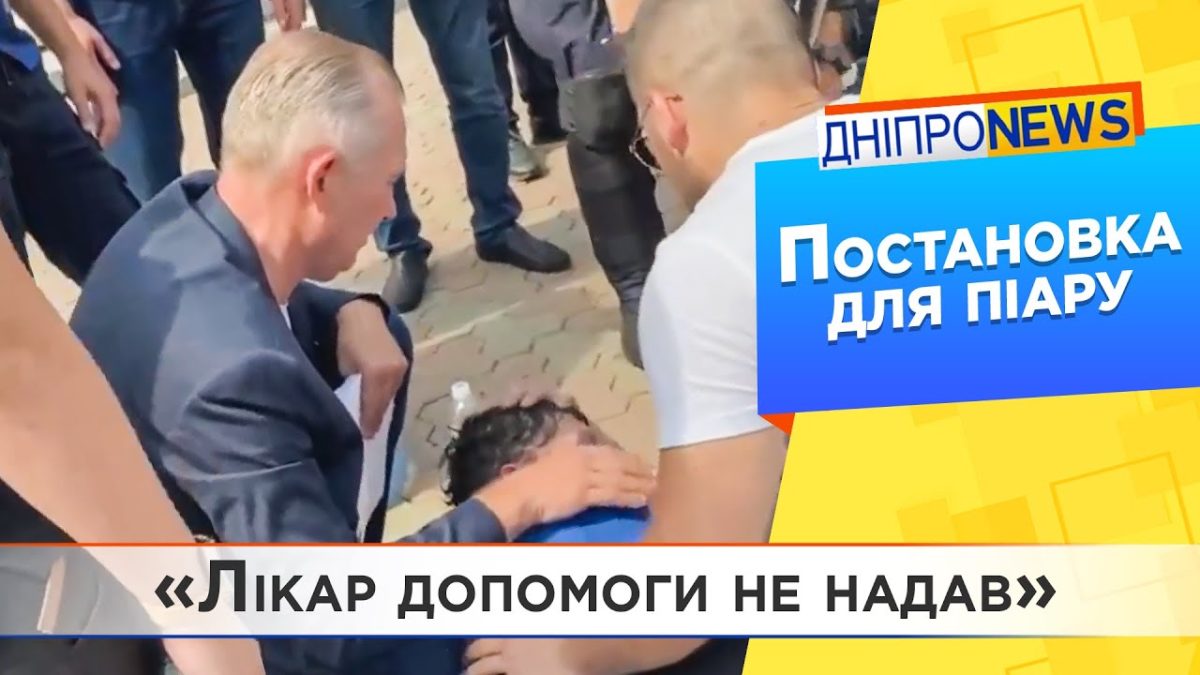 Напад стався у одного з учасників невдалого шоу, яке влаштували проплачені активісти і політики під міськрадою. Замість допомоги людині – тільки піар Сергія Риженко, головного лікаря й депутата. Камери очевидців зафіксували, як він підійшов до постраждалого, але жодних маніпуляцій не проводив. Натомість потримав руку над молодиком й торкнувся плеча, не відпускаючи паперу. Та людей не обманеш так легко. У коментарях пишуть: допомоги хлопцю Риженко не надав, і це видно.